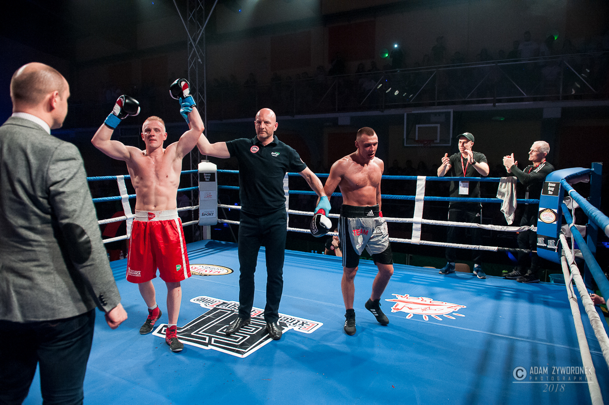 Imprezę otworzył pokaz umiejętności najmłodszych wychowanków P. Malinowskiego, a także występ raperów. Pierwszą, bardzo dramatyczną walkę stoczył Marcin Kujda z Maliowski Team z dolnoślązakiem Karolem Welterem w wadze 75 kg. Nasz zawodnik już na początku walki otrzymał potężny cios w noc i zalał się krwią. Mimo kontuzji kontynuował pojedynek, chociaż było widać, że oddychanie sprawia mu ogromną trudność. Mimo waleczności i sile woli minimalnie uległ K. Welterowi. Jako drugi walkę stoczył Mateusz Tratkiewicz z Malinowski Team z Pawłem Łozyniakiem z klubu Bokser Kożuchów. Obaj walczyli w wadze powyżej 91 kg. Mateusz ma 190 cm wzrostu, Paweł 180 cm. Mimo kontuzji nogi nasz zawodnik wygrał 3:0 z lepszym od siebie Łozyniakiem.