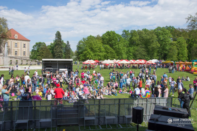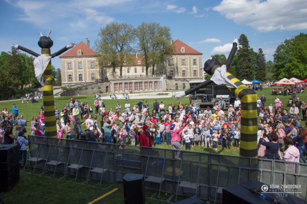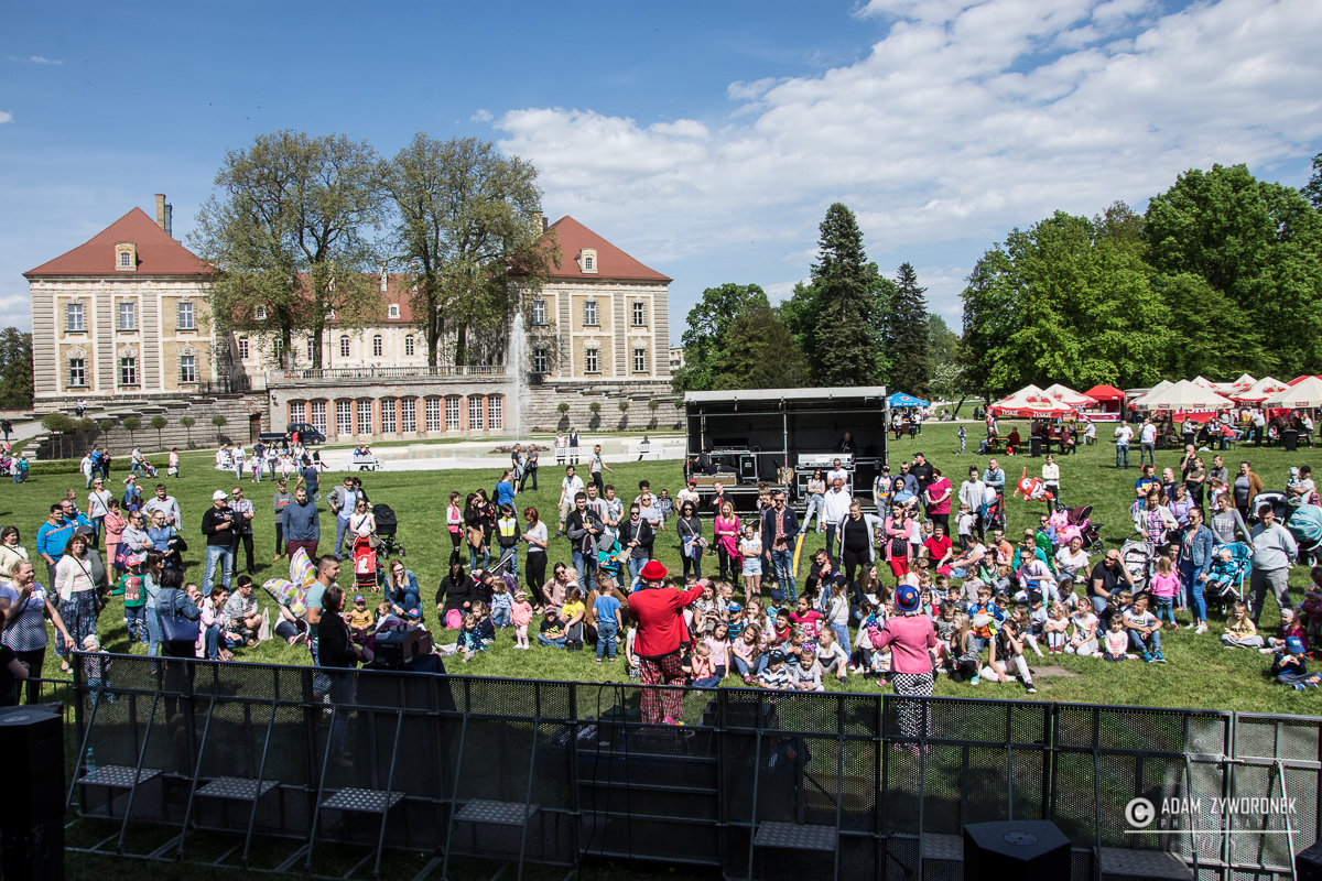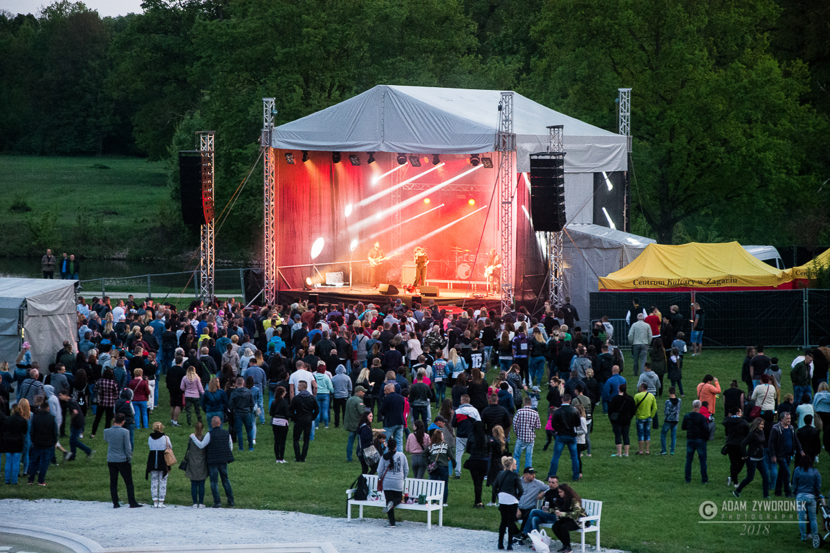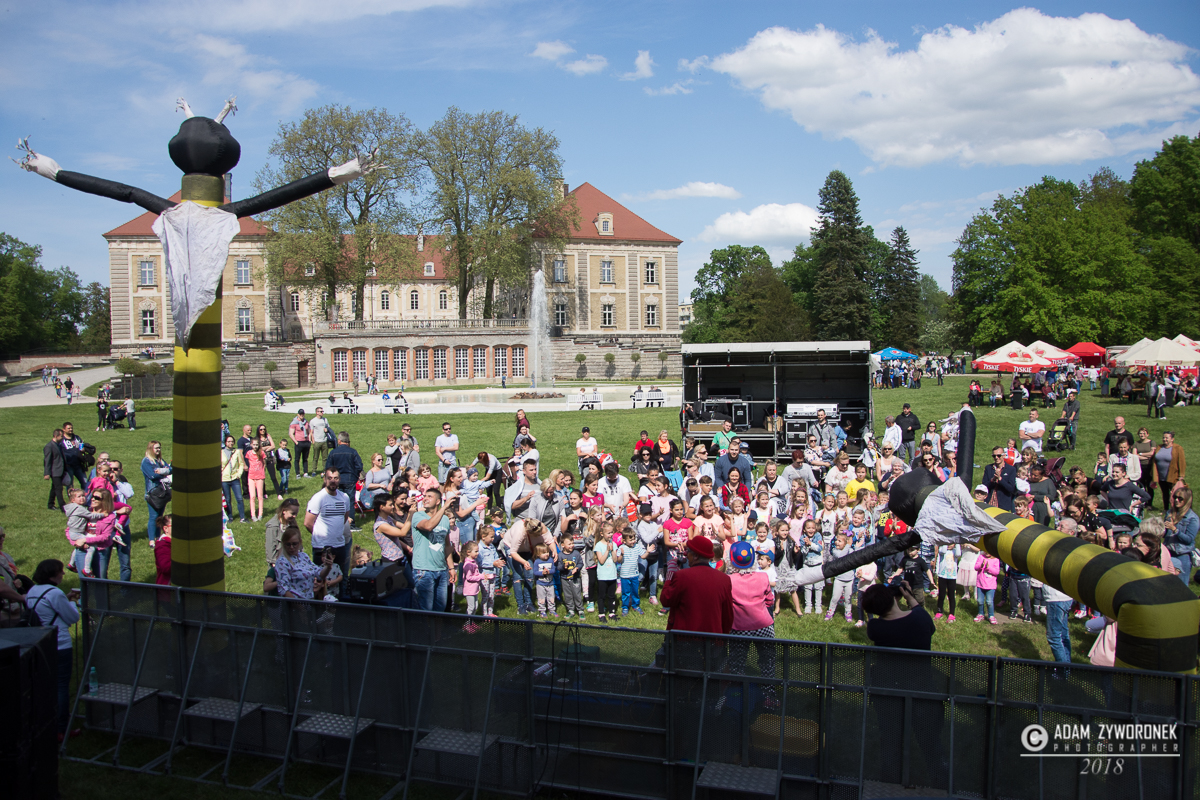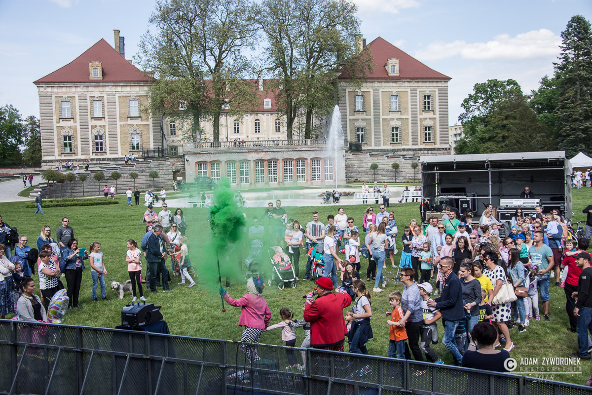 Majówkowa scena stanęła nad kanałem Bobru, frontem do pałacu, a wystąpiło na niej wiele świetnych zespołów. Po klaunach do biesiady zaprosiła „Kapela z naszego miasteczka”, która kontynuuje 25-letnią działalność Śląskiej Kapeli Podwórkowej „Trzy Ofiary Drogi do Europy”. Po niej na scenie zaprezentowali się wokaliści z Centrum Kultury. Jako suport Red Lips energetyczny koncert dała żarska grupa „Aby do rana”, która zaśpiewała polskie i światowe covery. Red Lips z charyzmatyczną wokalistką Joanną „Rudą” Lazer zagrał swoje największe przeboje, między innymi „To Co Nam Było”. Wyjątkowo utalentowaną wokalistkę możemy oglądać m.in. w show telewizji Polsat „Twoja twarz brzmi znajomo”.