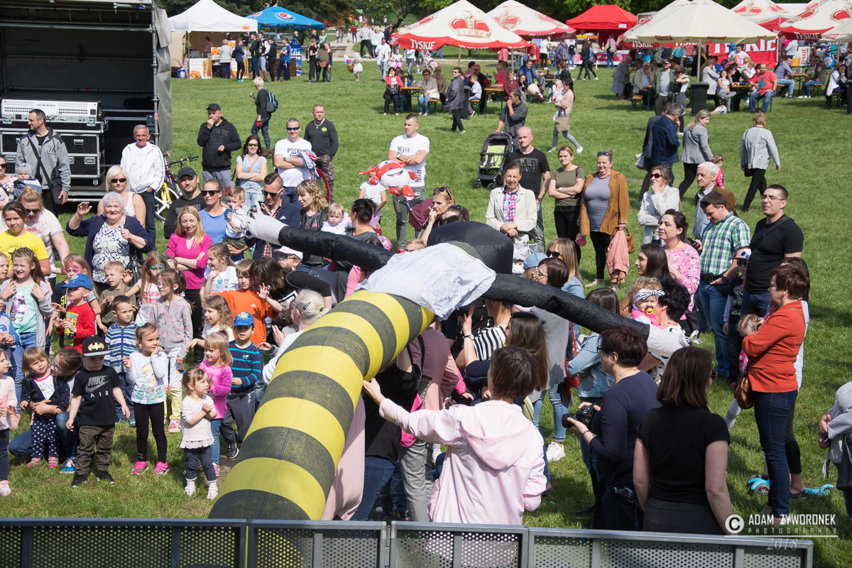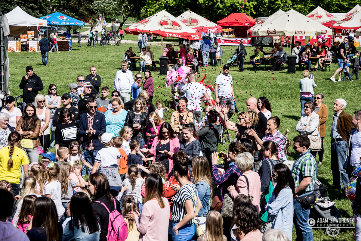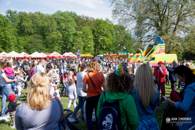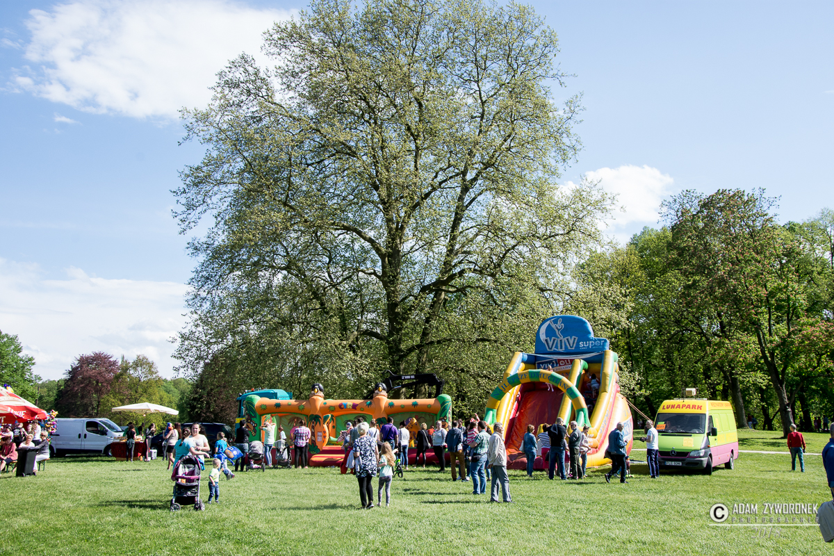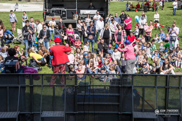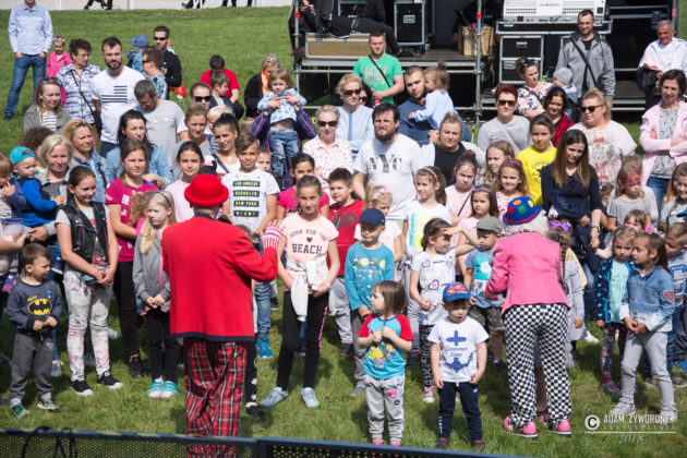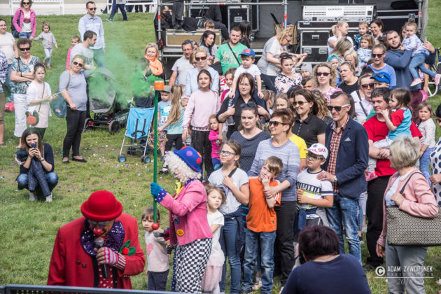 Majową zabawę w parku rozpoczęła zabawa z klaunami Ruphertem i Rico. Były wesołe piosenki, tańce i kolorowe konfetti. Gwiazdą wieczoru była Ruda z zespołem Red Lips.
