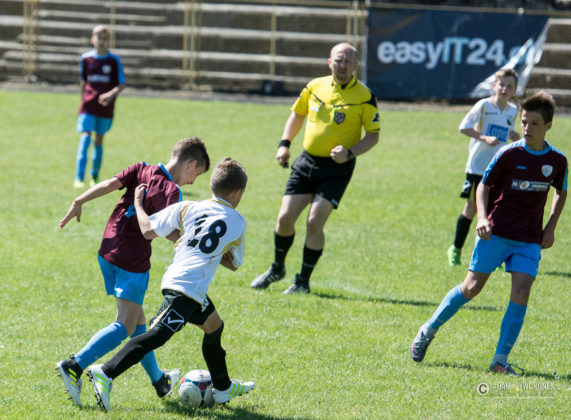 W sobotni poranek na żagańskim stadionie byliśmy świadkami bardzo zaciętego meczu młodzików pomiędzy UKS Czarni Żagań, a Piastem Iłowa. Spotkanie ofensywnie zaczęli zawodnicy z Iłowej, którzy zepchnęli gospodarzy do obrony, ale nie potrafili udokumentować tego bramką. Po pięciu minutach Czarni otrząsnęli się i zaczęli śmielej atakować bramkę rywala. – Uporządkowaliśmy grę w środkowej strefie co dało nam przewagę i możliwość zawiązywania składnych akcji relacjonuje trener Marcin Ochmański. Jedną z nich na bramkę zamienił Mikołaj Irski po bardzo dobrym podaniu A. Tworzydły niestety nie utrzymaliśmy naszej przewagi do końca pierwszej połowy, ponieważ z bardzo dobra kontrą wyszli zawodnicy Piasta i w sytuacji 2×1 umieścili piłkę w Żagańskiej bramce.
