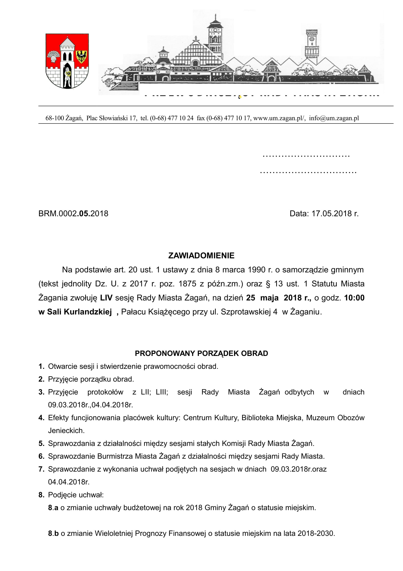 W piątek 25 maja o godz. 10.00 w sali Kurlandzkiej Pałacu Książęcego spotkają się radni miejscy. W porządku obrad między innymi: efekty działania Centrum Kultury, Biblioteki Miejskiej i Muzeum Obozów Jenieckich i udzielenie pomocy finansowej powiatowi żagańskiemu.