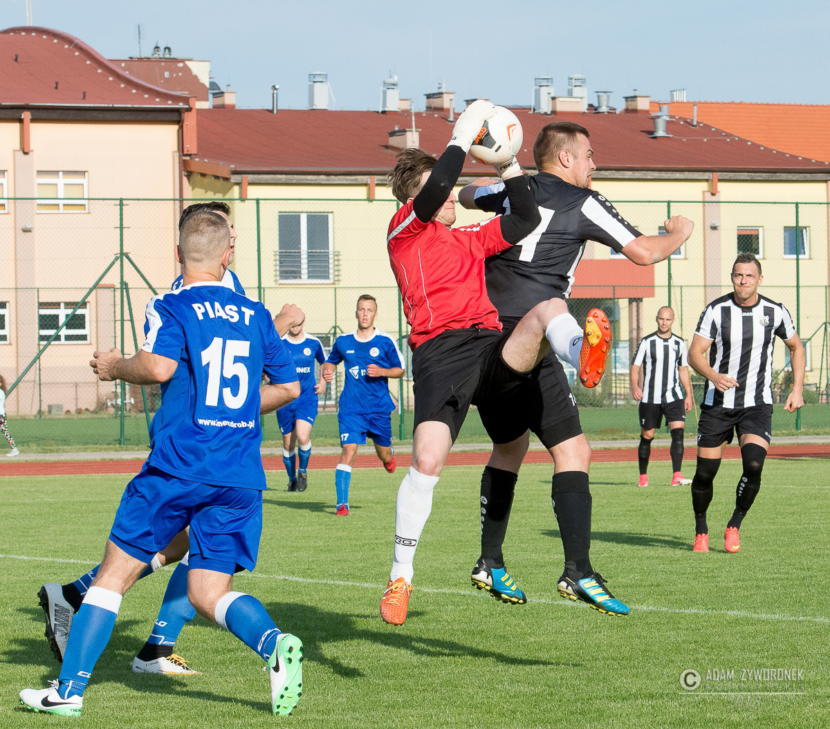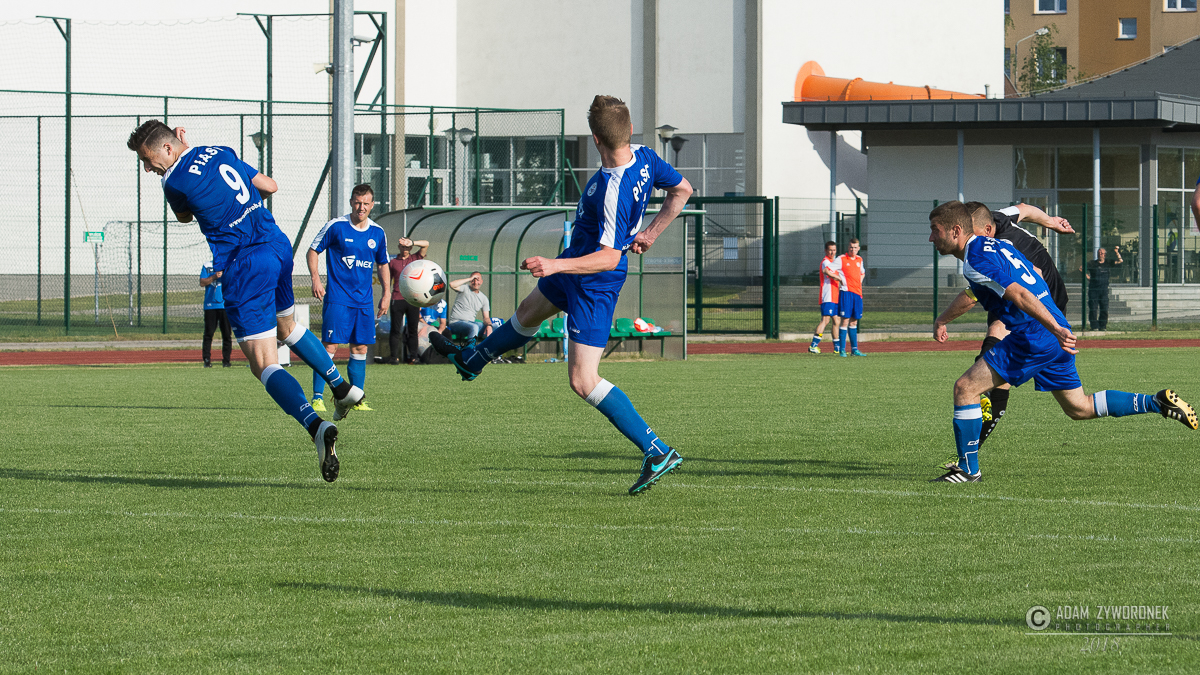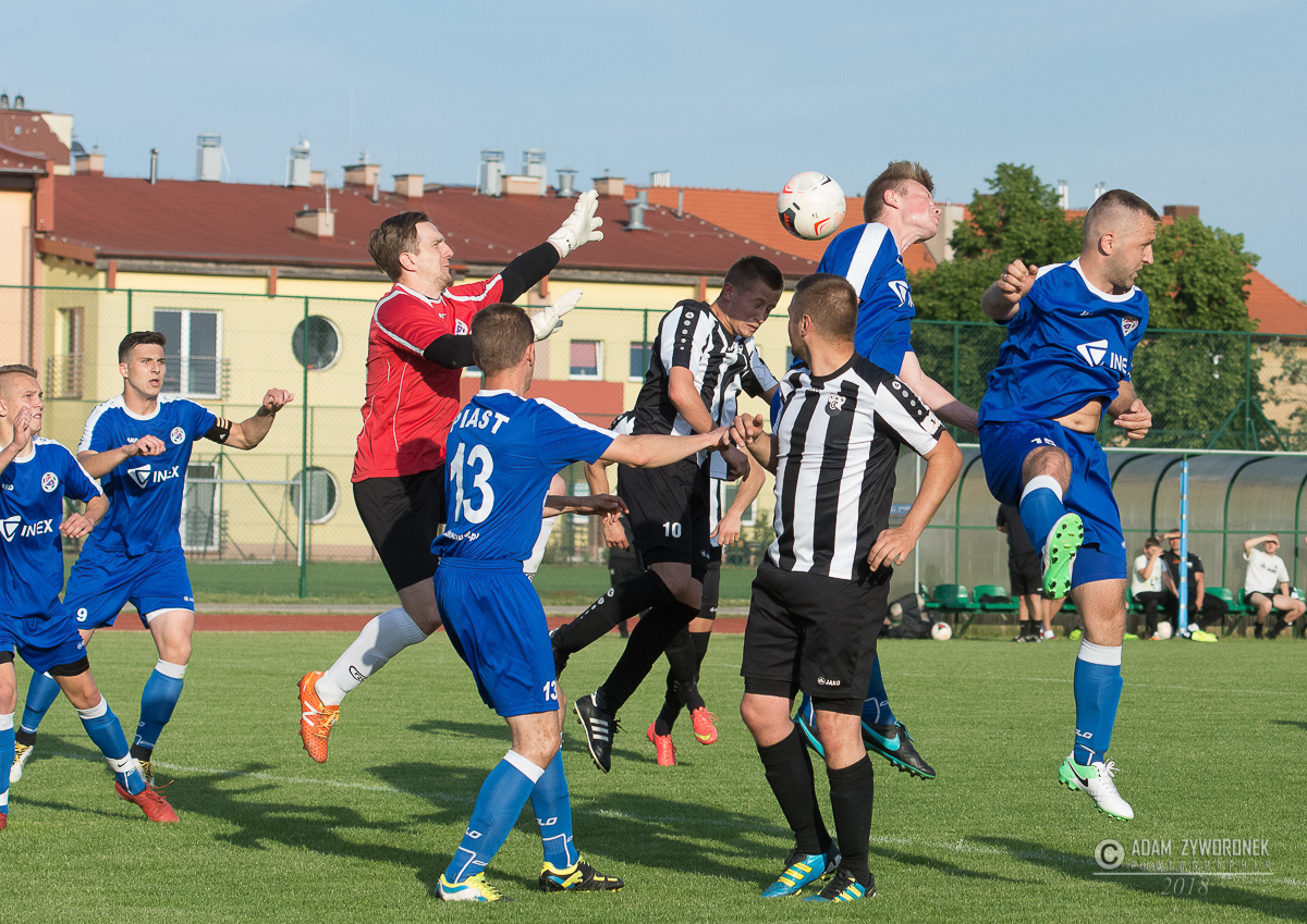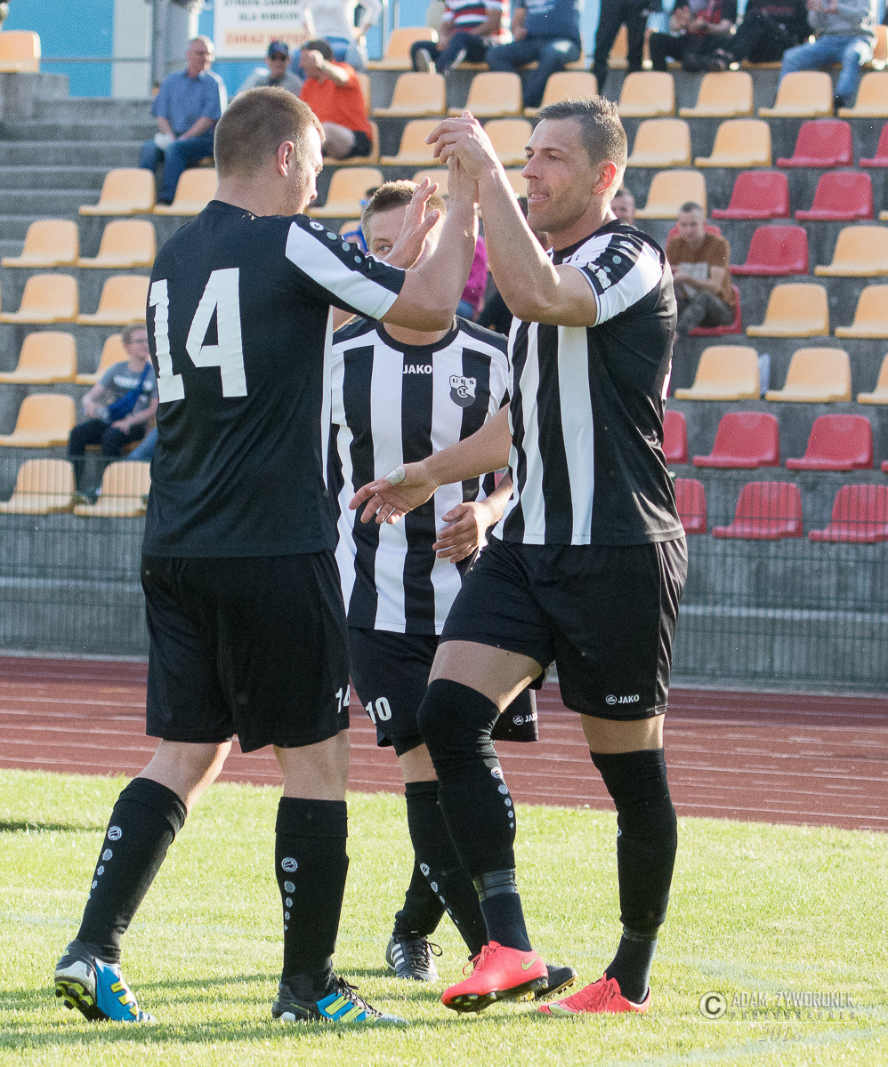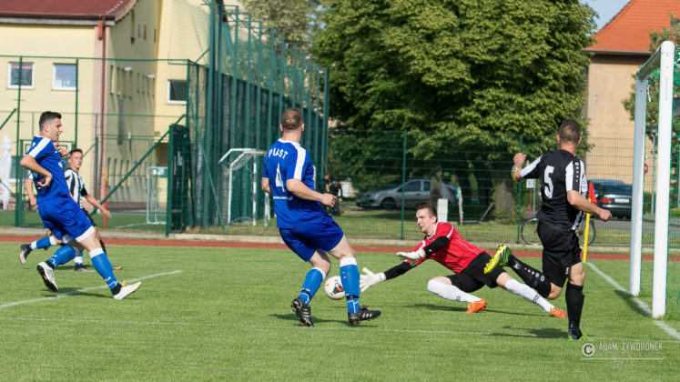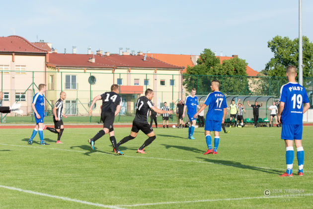 Czarni wygrywają z Piastem Czerwieńsk. Wszyscy kibice przychodzący na mecze UKS na brak emocji nie mogą narzekać a końcówek nie powstydził by się Alfred Hitchcock, nie inaczej było w dzisiejszym spotkaniu gdzie wynik zmienił się w ostatniej akcji. Czarni mecz zaczęli bardzo spokojnie realizując założenia trenera długo utrzymując się przy piłce i stwarzając klarowne sytuacje bramkowe., niestety nie potrafili zamienić ich na bramkę. Natomiast przeciwnicy po długim wybiciu piłki i nieporozumieniu jednego z zawodników z bramkarzem objęli prowadzenie. Żaganianie rzucili się do odrabiania strat ale nie mogli wstrzelić się w bramkę ,dopiero pod koniec pierwszej połowy skuteczny strzał na bramkę oddał kapitan drużyny i doprowadził do remisu. W szatni znów było gorąco. Druga połowa to ponownie przewaga Czarnych tylko że przy ich strzałach brakowało precyzji lub odrobinę szczęścia a przeciwnik po jednym stałym fragmencie gry ponownie wyszedł na prowadzenie . UKS chcąc zdobyć trzy punkty musiał jeszcze bardziej zagrać ofensywnie i to się udało Do wyrównania Czarni doprowadzili po dobrej składnej akcji całego zespołu i gdy wydawało się,że wszystko jest pod kontrolą jeden z zawodników gospodarzy dostał czerwoną kartkę i ostatnie 20 minut UKS grał w osłabieniu . Mało kto spodziewał się że gospodarze wygrają ten mecz bo coraz śmielej atakowali goście oddając raz po raz groźne strzały na bramkę. Tylko że nie Czarni nie kalkulowali i grali do końca i w ostatniej akcji meczu potrafili bardzo dobrze rozegrać stały fragment gry który zamienili na zwycięską bramkę. Zaraz po niej sędzia zakończył ten bardzo emocjonujący mecz.. CZARNI ŻAGAŃ następny mecz na własnym boisku zagrają 9 czerwca z Mieszko Konotop na który wszystkich kibiców serdecznie zapraszamy EMOCJE GWARANTOWANE