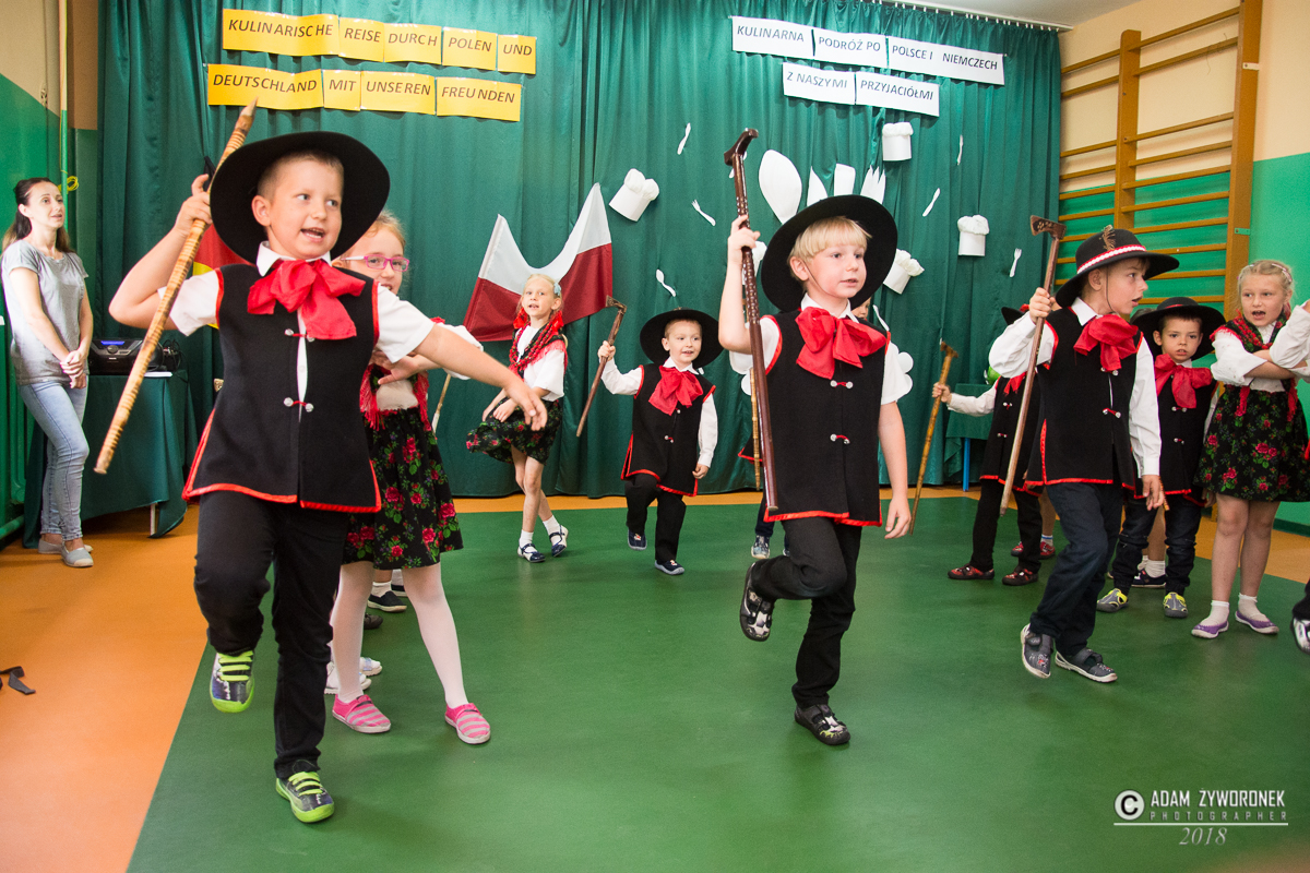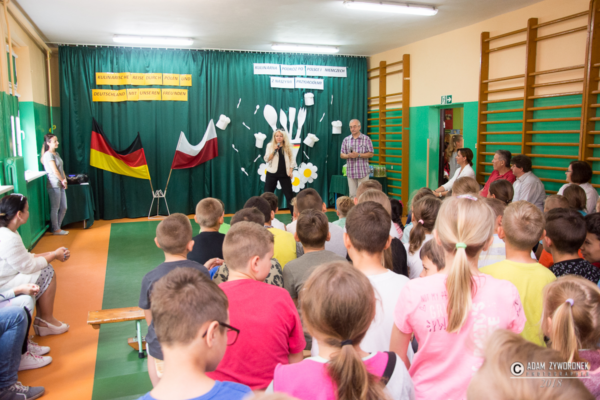 14 czerwca 2018 roku  gościliśmy w żagańskiej “Trójeczce” uczniów i nauczycieli ze szkoły w Ortrand oraz przedstawicieli z Urzędu Miasta Ortrand. W bieżącym roku szkolnym realizowaliśmy projekt pt. ,,Podróż kulinarna po Polsce i Niemczech z naszymi przyjaciółmi’’. Jest to już 22 wspólny polsko-niemiecki projekt. Jak zwykle powitaliśmy naszych partnerów pięknym programem artystycznym: tańcami i śpiewem. W imieniu uczniów naszej szkoły, przyjaciół z Niemiec powitała Patrycja Adamczyk, uczennica klasy 7b, w imieniu Burmistrza Miasta Żagań gości powitała Pani Monika Wojtysiak. Po występach i powitaniu uczniowie pojechali na wycieczkę do Ostaszowa, do wioski indiańskiej i obozowiska rycerskiego Wokini, usytuowanego w pobliżu malowniczych stawów w Borach Dolnośląskich. Tam oprócz zwiedzania obozowiska i wioski indiańskiej uczniowie doili krowę, uczestniczyli w torze przeszkód, walczyli na miecze przebrani w stroje rycerskie, a przede wszystkim sami robili pierogi, a później po ugotowaniu, wspólnie je konsumowali. Nie zabrakło również wspólnych rozmów, gier i zabaw na boisku Orlik. Wieczorem pożegnaliśmy naszych przyjaciół.