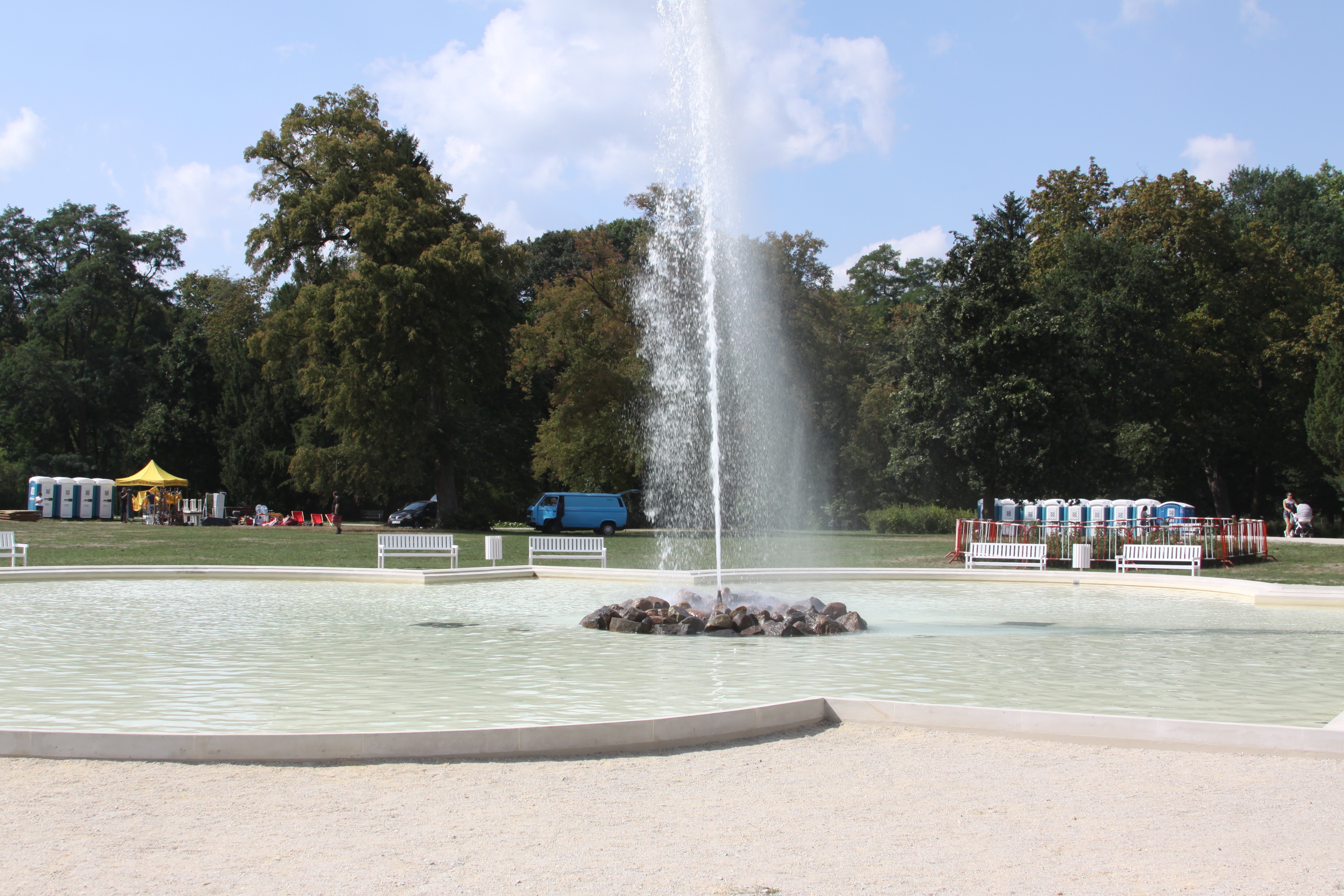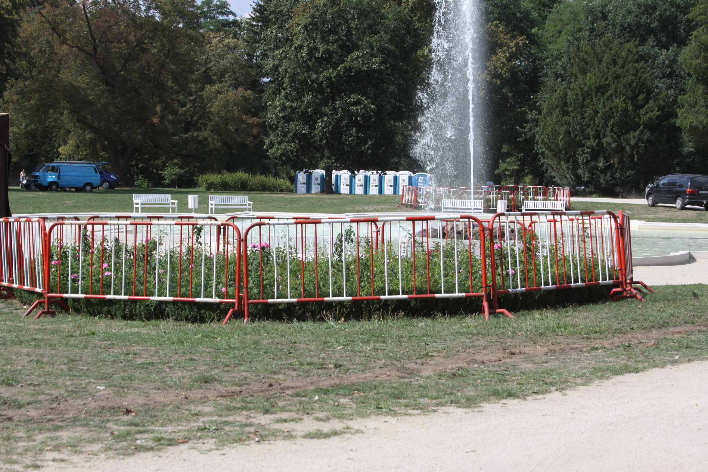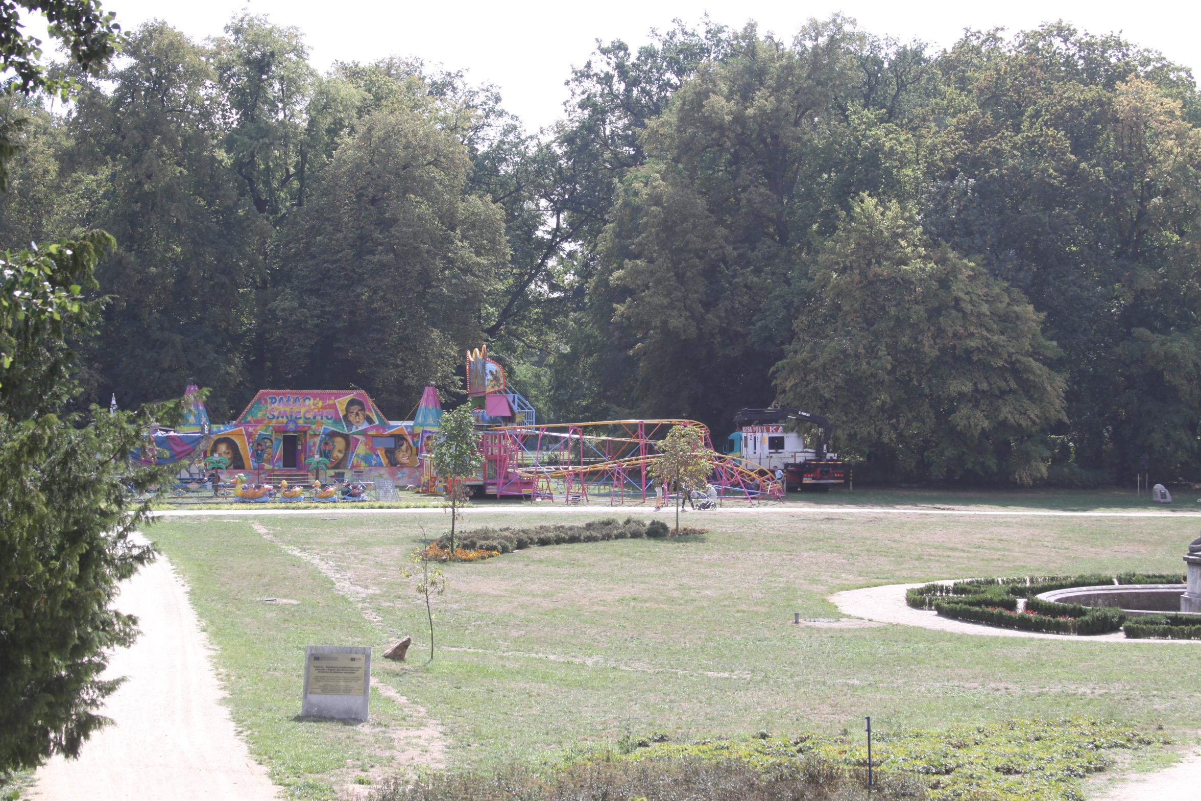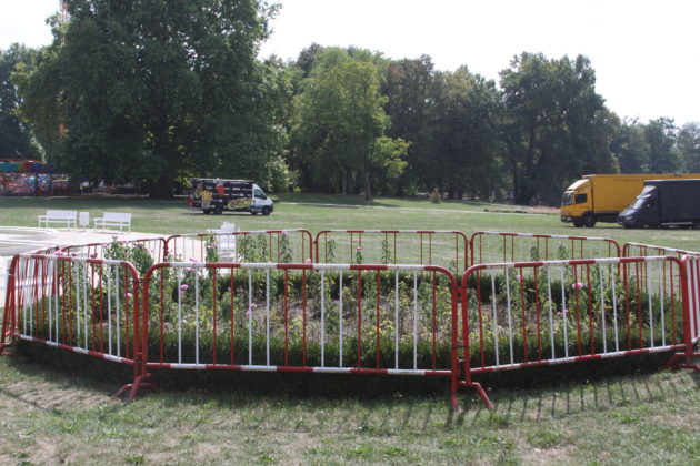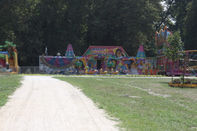 Zaplecze sceny zwrócone jest w stronę kanału, frontem do pałacu i parku. Po lewej stronie rozbija się wesołe miasteczko z karuzelami. Tuż obok widać już pierwsze punkty gastronomiczne. Wokół różanych klombów porozstawiano ogrodzenia, żeby nie zostały zdeptane przez tłum ludzi. – Odgrodzona będzie również główna fontanna i oranżeria – wyjaśnia Paweł Lóssa, prezes spółki Pałac Książęcy. – Zgodnie z wymogami policji zamknięty też będzie pałacowy dziedziniec.
