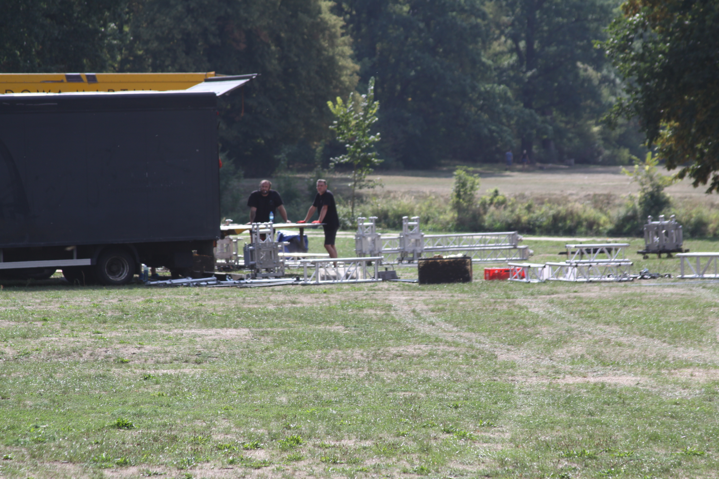 W czwartek (6 września) przed południem na podzamczu można było oglądać rozstawianie urządzeń i sceny nad kanałem.