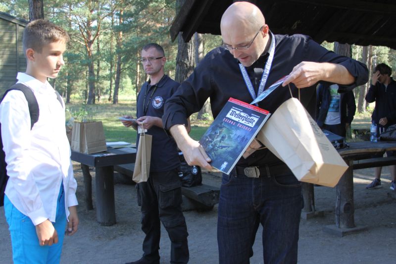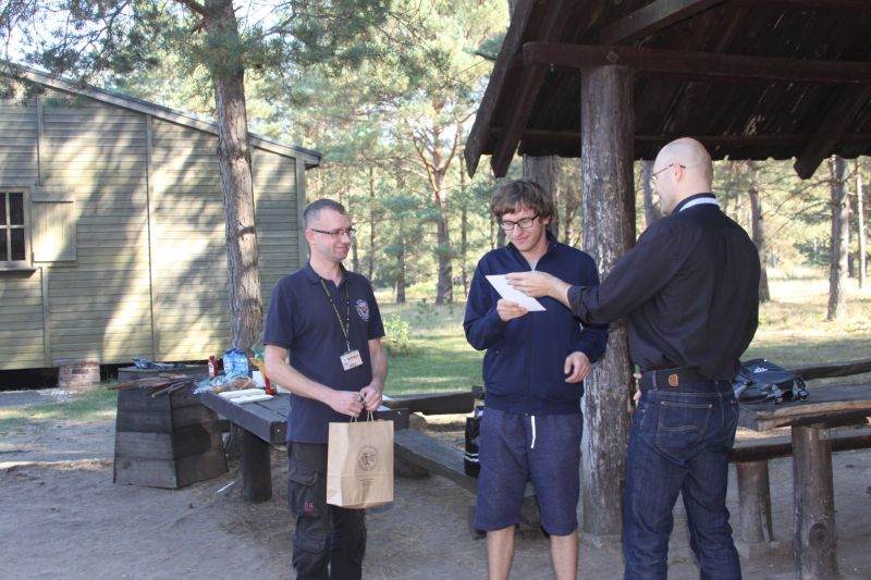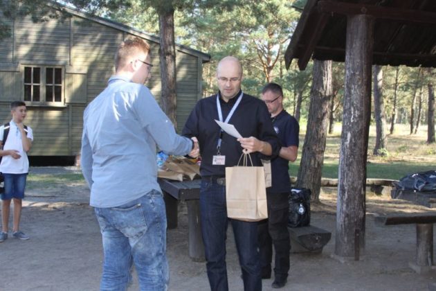 Uczestnicy konkursu przed barakiem 104 otrzymali dyplomy i nagrody.