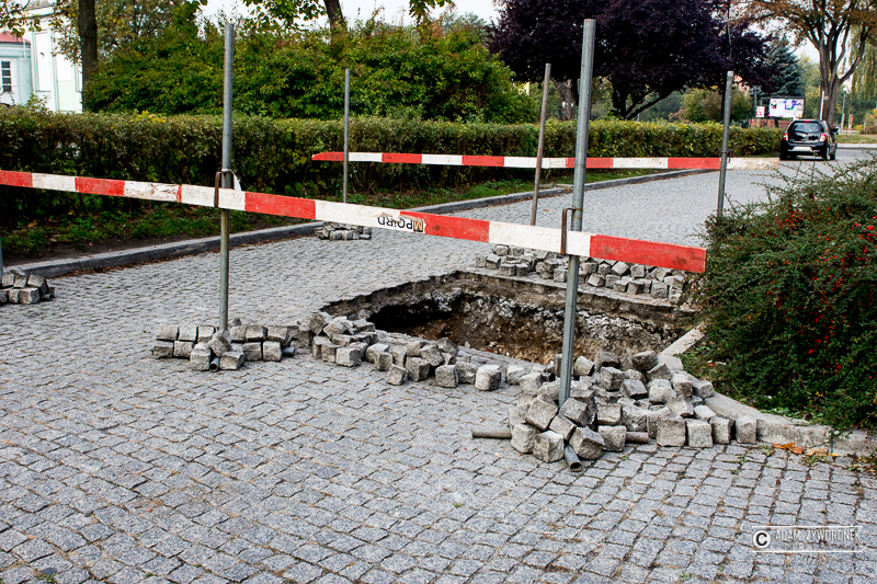 W ostatnim czasie doszło do zapadnięcia nawierzchni parkingu przy ul. Rybackiej oraz jezdni przy Placu Klasztornym. Ponieważ sytuacja ta wymaga rzetelnego rozpatrzenia (tj. zasięgnięcia opinii na temat przyczyn osiadania nawierzchni oraz skali zagrożenia ewentualnym dalszym osiadaniem gruntu), tereny te zostały zabezpieczone. Wyjaśniamy jednocześnie, iż w Żaganiu wiele miejsc obecnie przeznaczonych dla ruchu samochodowego i pieszego w ubiegłych wiekach zostało zabudowanych. Charakterystyczne były głębokie sklepione piwnice, często na więcej niż jednym poziomie. Nigdy nie zinwentaryzowano w pełni tej podziemnej infrastruktury, stąd niespodziewane tąpnięcia nawierzchni. Dlatego też obecnie projektowanie poprzedzamy odpowiednimi badaniami, które rozszerzane są w trakcie prowadzenia prac. Nadrzędne jest tutaj bezpieczeństwo użytkowników. Wstępnie stwierdzono, że przyczyną sytuacji powstałej na ul. Rybackiej jest najpewniej zapadnięcie niezinwentaryzowanego osadnika (zbiornika kanalizacyjnego), natomiast w rejonie Placu Klasztornego obsunięcie sklepień dawnej zabudowy.
