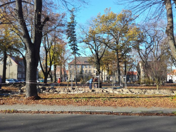 Trwa modernizacja oświetlenia skweru naprzeciwko Liceum Ogólnokształcącego im. Stefana Banacha.
