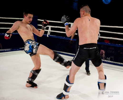 1. Bartosz Mietliński (Armia Polkowice) vs Michał Gołębiowski (Maku Gym Nowe Miasteczko) K-1 -60 kg 3×2 min, wygrana: Michał Gołębiowski (punkty 3:0),