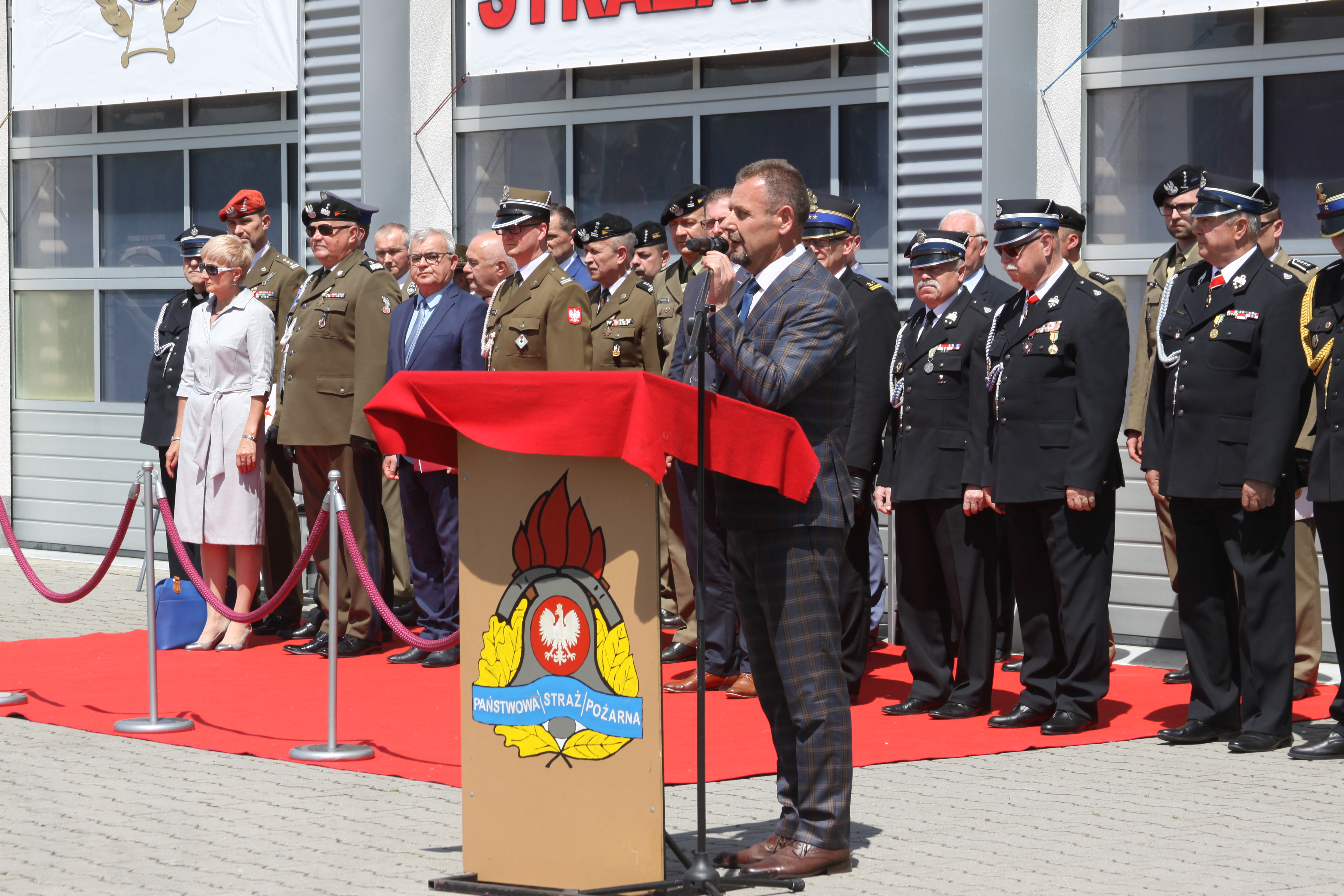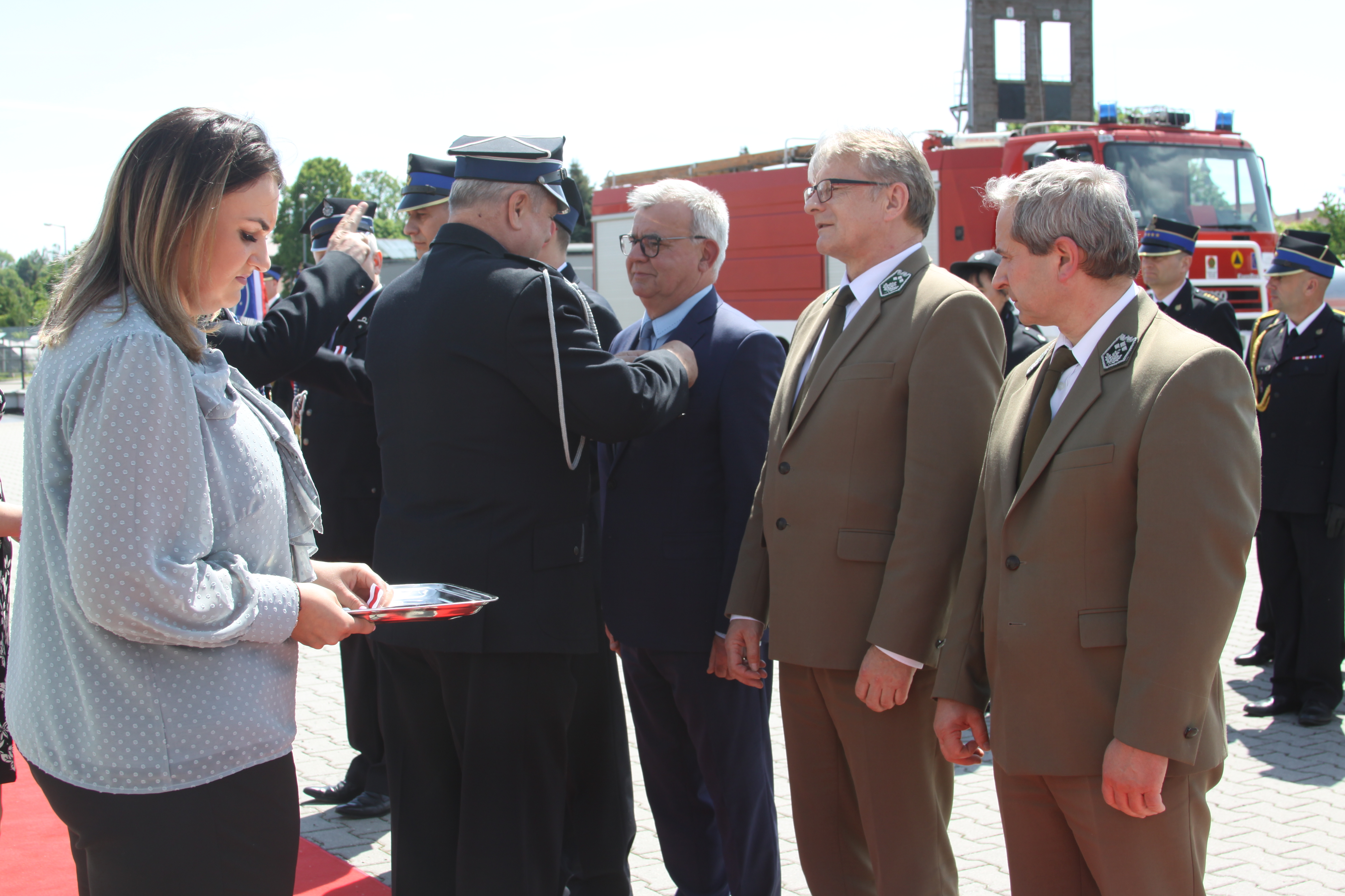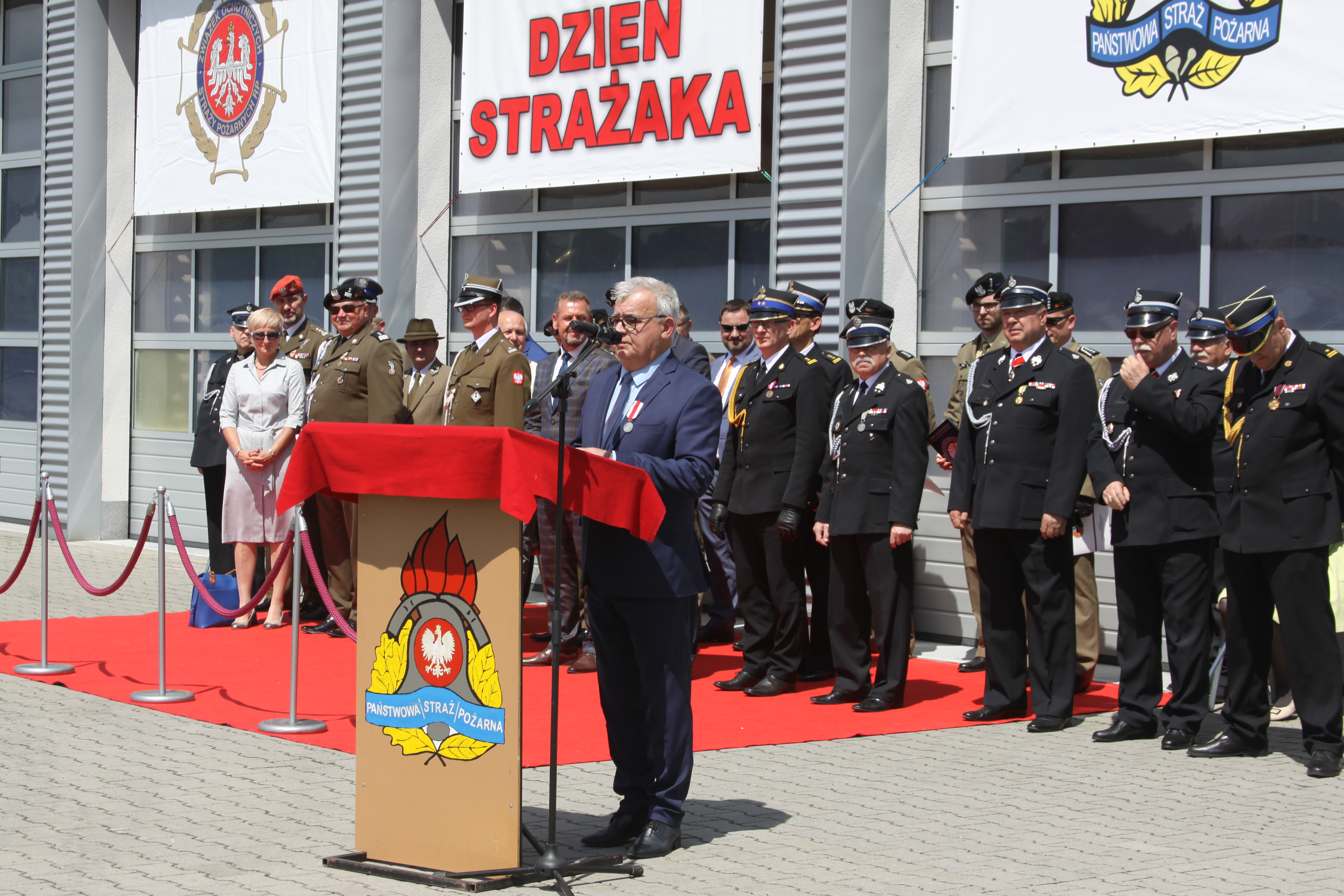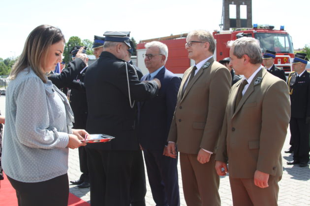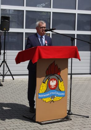 Obecny na uroczystościach burmistrz Andrzej Katarzyniec podziękował zebranym za ofiarną służbę. Podkreślił istotną rolę, jaką w społeczności (tej lokalnej i globalnej) odgrywają strażacy. Podziękował za codzienny trud, zaangażowanie i profesjonalizm, który buduje nasze poczucie bezpieczeństwa oraz za odznaczenie srebrnym medalem Za Zasługi dla Pożarnictwa.