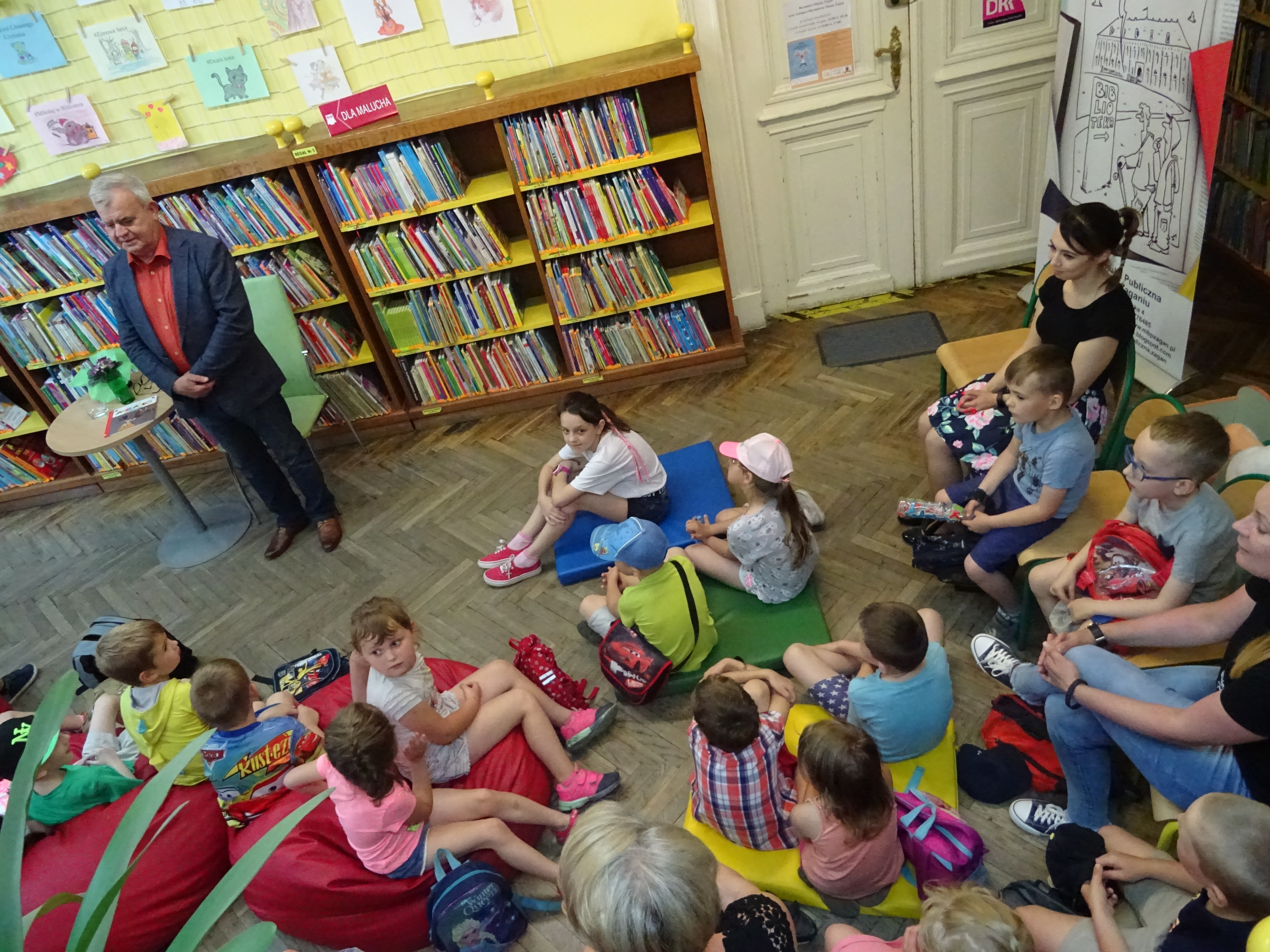 Dzisiaj gościem Miejskiej Biblioteki Publicznej im. Papuszy w Żaganiu był Burmistrz Andrzej Katarzyniec, który przeczytał dzieciom książkę Wandy Chotomskiej “Abecadło w rymy wpadło”. W trakcie spotkania dzieci z Publicznej Szkoły Podstawowej nr 2 pytały Burmistrza o jego pasje i zainteresowania. Dowiedziały się, że lubi łowić ryby, a wśród złowionych okazów znajduje się 36 kg sum. Było bardzo wesoło i nie zabrakło prezentów.
