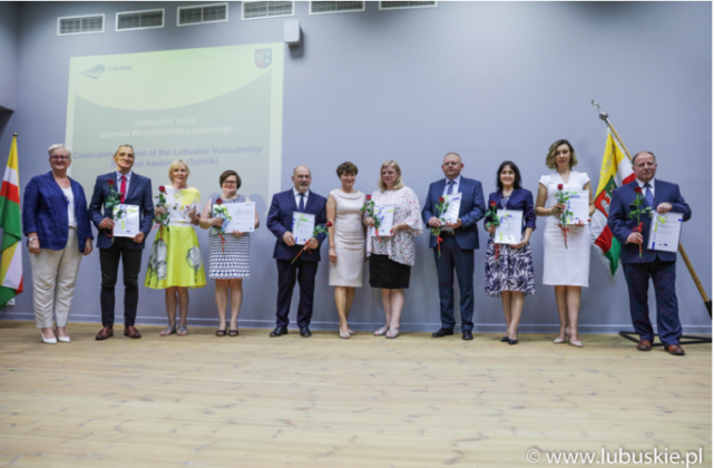 Uroczysta sesja Sejmiku Województwa Lubuskiego odbyła się 15 czerwca w Sali im. Janusza Koniusza Wojewódzkiej i Miejskiej Biblioteki Publicznej im. C. Norwida w Zielonej Górze. W jej trakcie nagrodzono osoby działające na rzecz Województwa Lubuskiego oraz podmioty uznane przez Urząd Marszałkowski za lubuskich liderów w wykorzystywaniu środków unijnych. Przypominamy, że w kategorii „Lubuskie Gminy Europejskie” za najlepszą gminę miejską uznano Żagań. Nagrodę dla samorządu odebrał w trakcie sesji zastępca burmistrza Sebastian Kulesza.