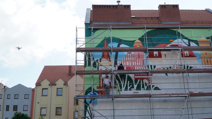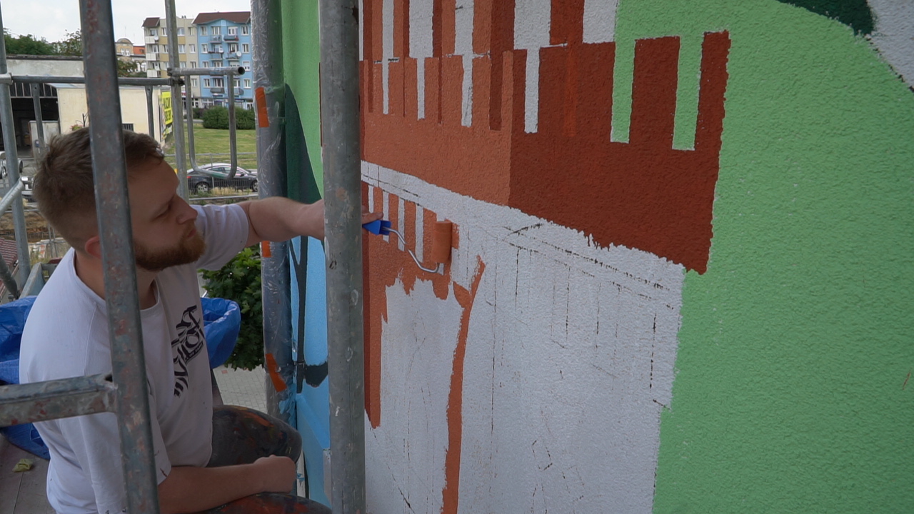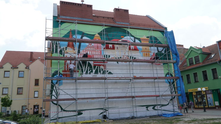 Kolejny dzień prac za nami. Powstaje pierwszy żagański mural – z każdym dniem nabierając odpowiedniego kształtu. Zapraszamy do śledzenia naszej galerii zdjęć z tego działania. Autorką projektu jest Anastazja Drabot. Prace zakończą się w ciągu 7 dni.