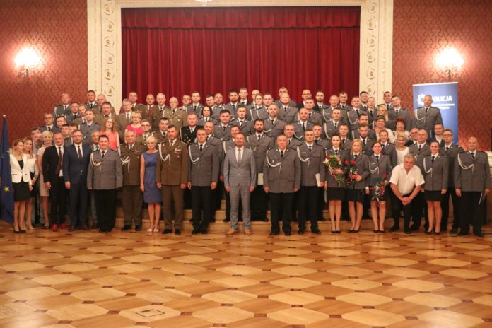 24 lipca br. w Sali Kryształowej Pałacu Książęcego w Żaganiu odbyła się uroczysta zbiórka z okazji Święta Policji. Uroczystości zostały zorganizowane dokładnie w 100. rocznicę powstania Policji Państwowej. Powiatowe Obchody Święta Policji rozpoczęły się mszą świętą prowadzoną przez kapelana żagańskich policjantów ks. Władysława Tasiora, która została odprawiona w Kościele Wniebowzięcia Najświętszej Maryi Panny w Żaganiu. Na uroczystości przybył Zastępca Komendanta Wojewódzkiego Policji w Gorzowie Wlkp. mł. insp. Bogdan Piotrowski. Zaszczycili również swoją obecnością przedstawiciele władz samorządowych i lokalnych, służb mundurowych oraz instytucji, jednostek i organizacji, z którymi żagańska jednostka na co dzień współpracuje.