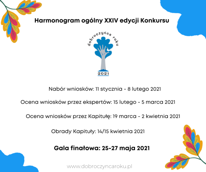 W Polsce jest wiele firm, które samodzielnie lub we współpracy z organizacjami pozarządowymi, realizują wartościowe projekty społeczne, angażując się przy tym całym sercem. Warto, aby dowiedziała się o nich cała Polska. Od 11 stycznia 2021 roku organizacje pozarządowe mogą zgłaszać firmy i fundacje korporacyjne do XXIV edycji Konkursu o tytuł „Dobroczyńca Roku”. Kapituła nagrodzi w tym roku również firmy zaangażowane w przeciwdziałanie skutkom pandemii. Do kategorii specjalnej „Walka ze skutkami pandemii Covid-19”, mogą zgłaszać się firmy, koalicje firm i fundacje korporacyjne. Wnioski można składać od 11 stycznia do 8 lutego na stronie dobroczyncaroku.pl. Hasło tegorocznej edycji to Bohaterowie społecznego zaangażowania! Do udziału w konkursie zaprasza Akademia Rozwoju Filantropii w Polsce. Fundatorem Konkursu jest Polsko-Amerykańska Fundacja Wolności.