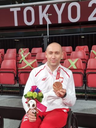 Tomasz Jakimczuk, brązowy paraolimpijczyk z Tokio, powrócił kilka dni temu do domu. W międzyczasie był gościem programu porannego TVN, został powitany w piątek na jarmarkowej scenie, wczoraj wyróżniony przez Ministra Kultury, Dziedzictwa Narodowego i Sportu Piotra Glińskiego złotą odznaką “Za zasługi dla sportu”. Prosto z Zamku Królewskiego powrócił do pracy, gdzie czekaliśmy na niego my.