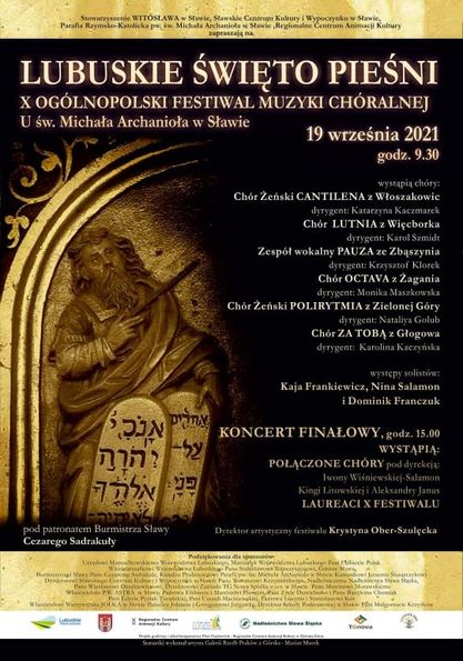 X Jubileuszowy Ogólnopolski Festiwal Muzyki Chóralnej w Sławie zakończył się wspólnym koncertem wszystkich chórów w Kościele pw. św. Michała Archanioła w Sławie.