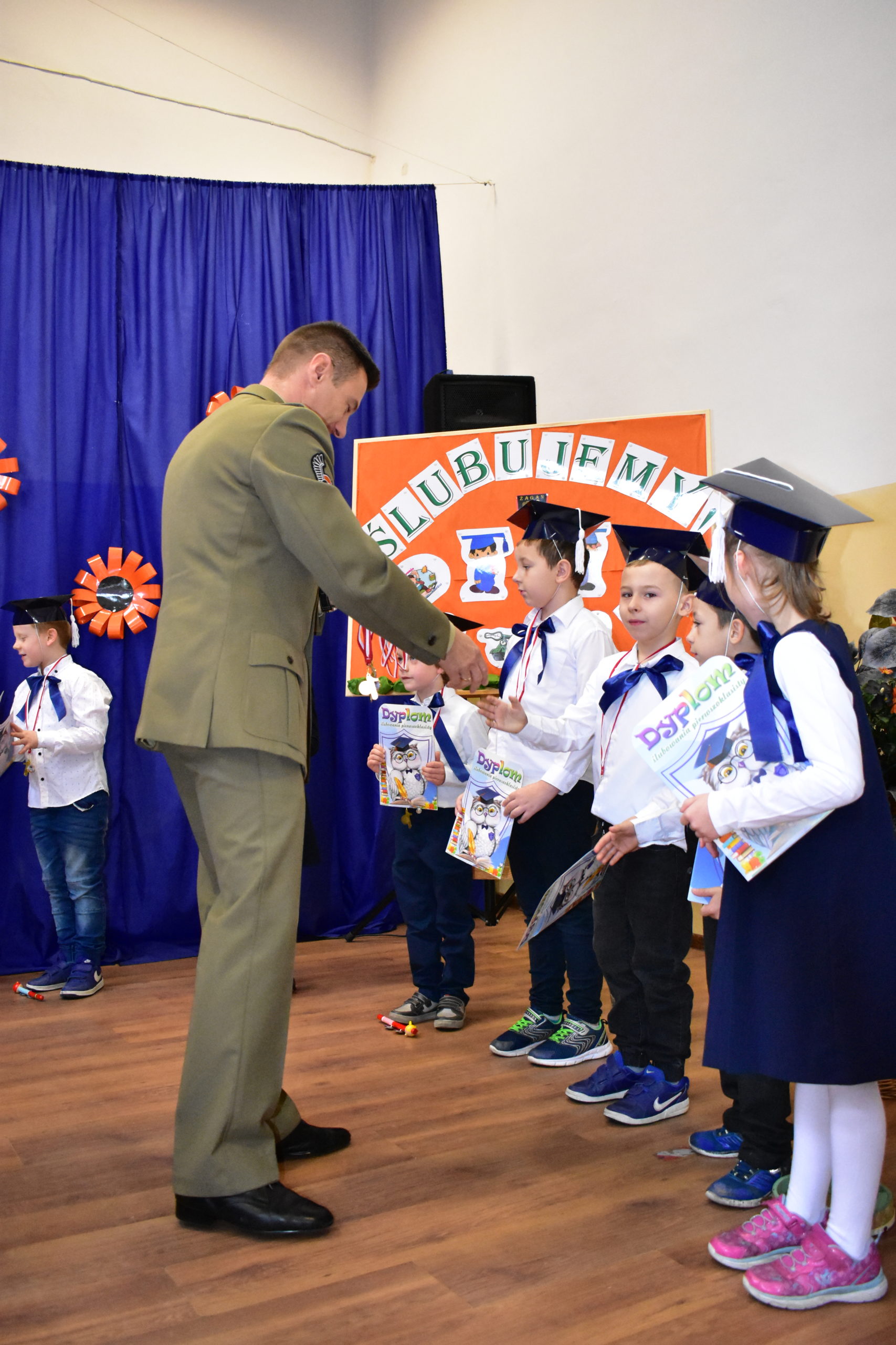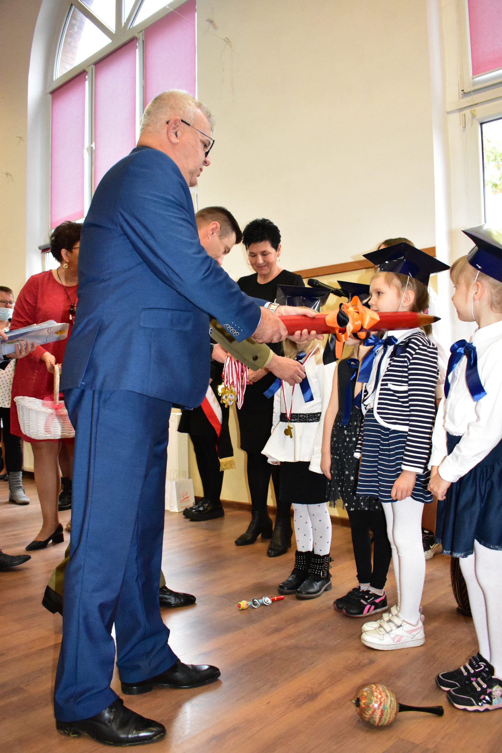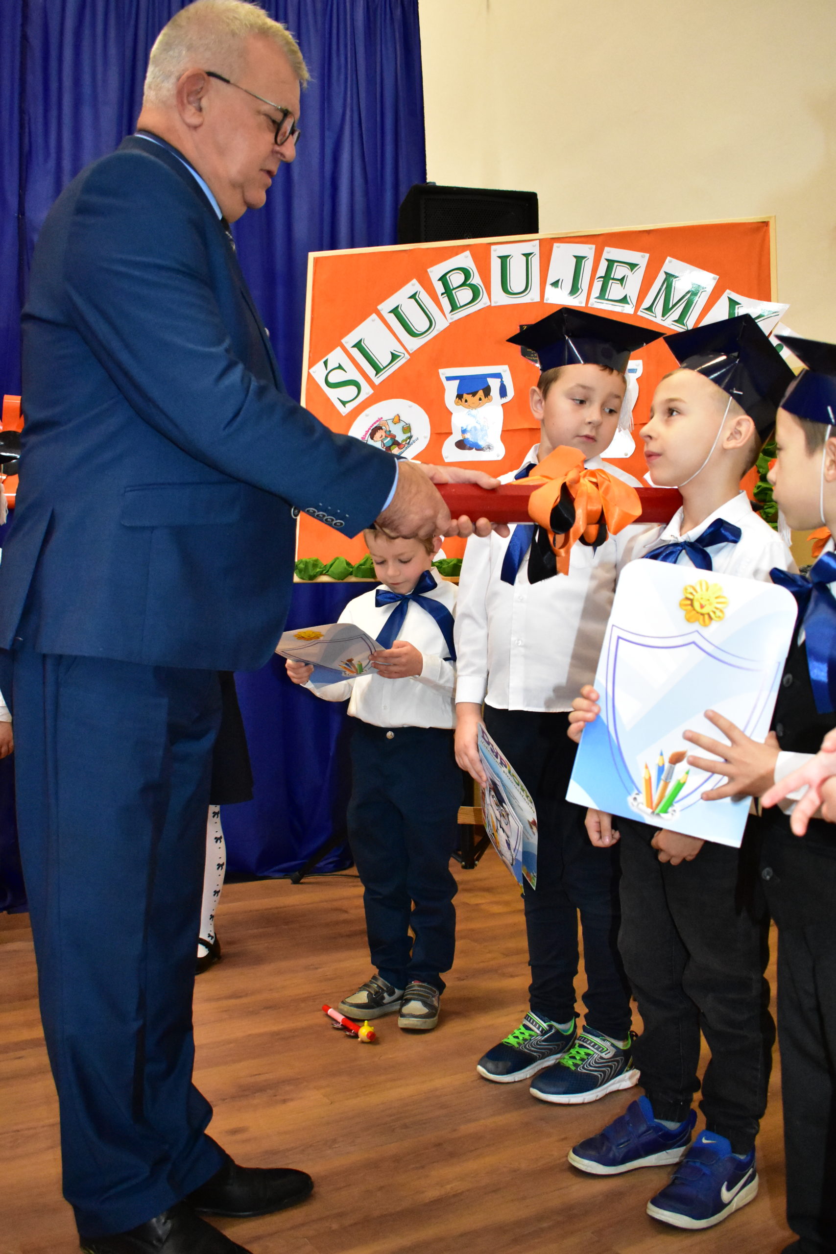 Dzień 14 października 2021 roku na długo pozostanie w pamięci rodziców oraz dzieci – uczniów klas pierwszych żagańskiej “Dwójeczki”. Właśnie tego dnia najmłodsi złożyli ślubowanie, wkraczając w ten sposób w poczet braci uczniowskiej. Uroczystość rozpoczęto odśpiewaniem hymnu szkoły oraz krótkim występem artystycznym. Wszystkie zaprezentowane umiejętności przekonały zebranych, że dzieci zasłużyły na miano “uczniów”. W obecności dyrektor Doroty Maćkowskiej, burmistrza Andrzeja Katarzyńca, przewodniczącego rady Adama Matwijowa i rodziców złożyły ślubowanie, obiecując sumienne wykonywanie obowiązków szkolnych. Gospodarz miasta pogratulował opiekunom pociech, życząc wszystkim przede wszystkim dużo zdrowia. Burmistrz wyraził nadzieję, że na zakończenie roku spotkamy się, świętując doskonałe wyniki w nauce naszych pierwszaczków.