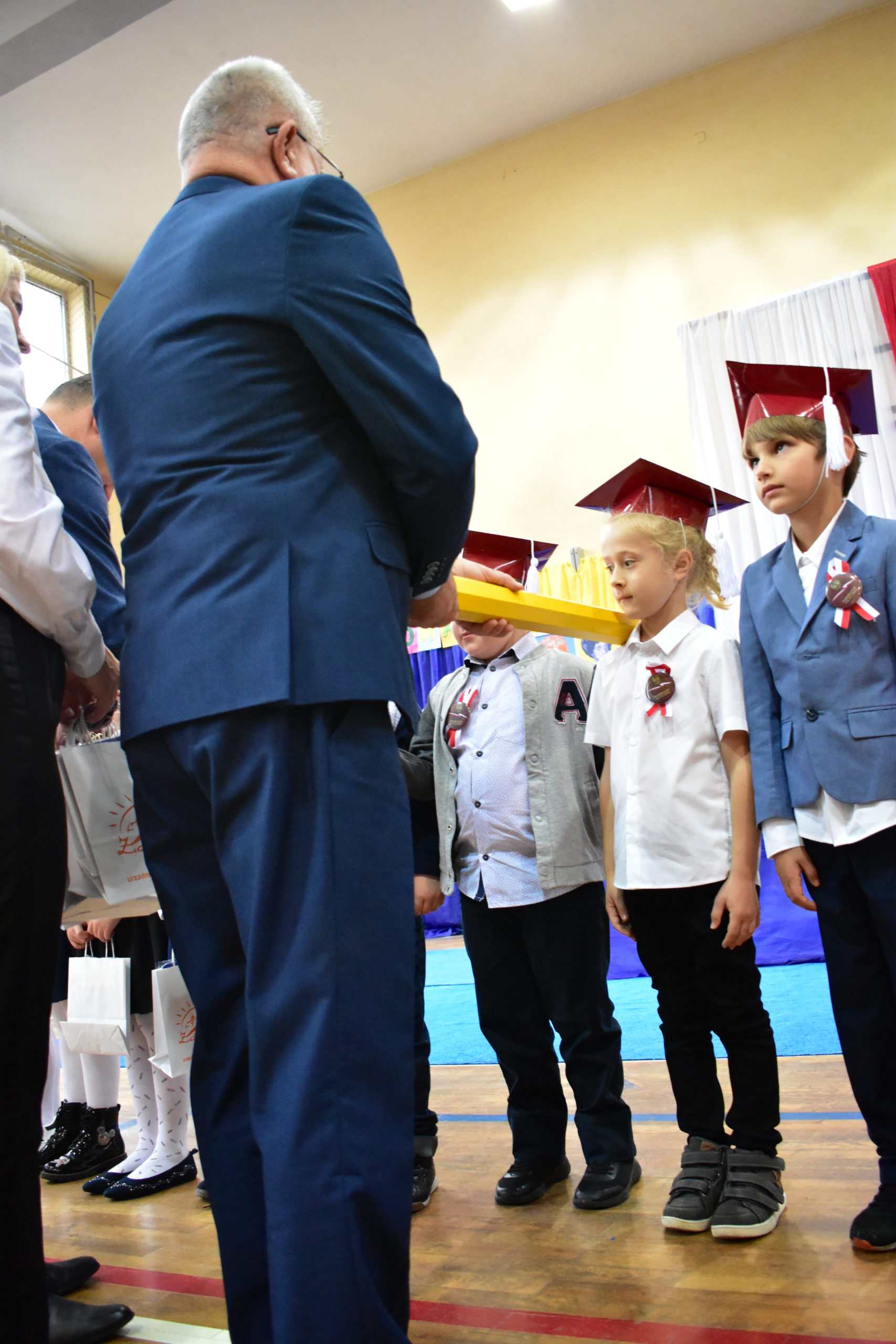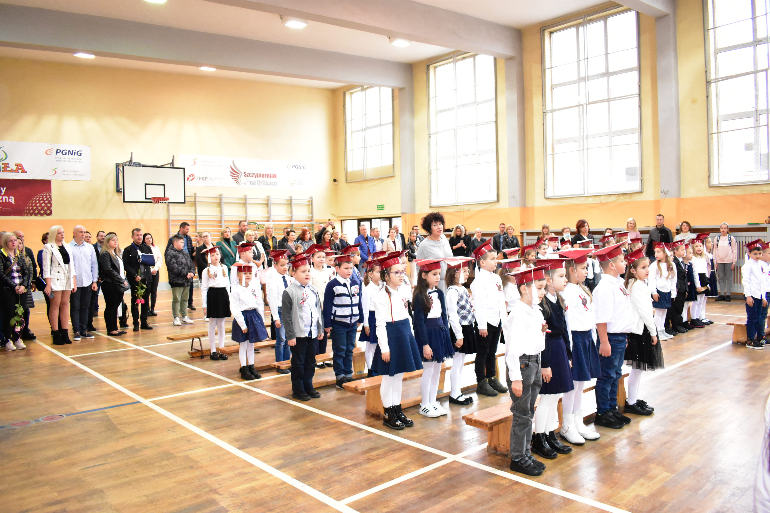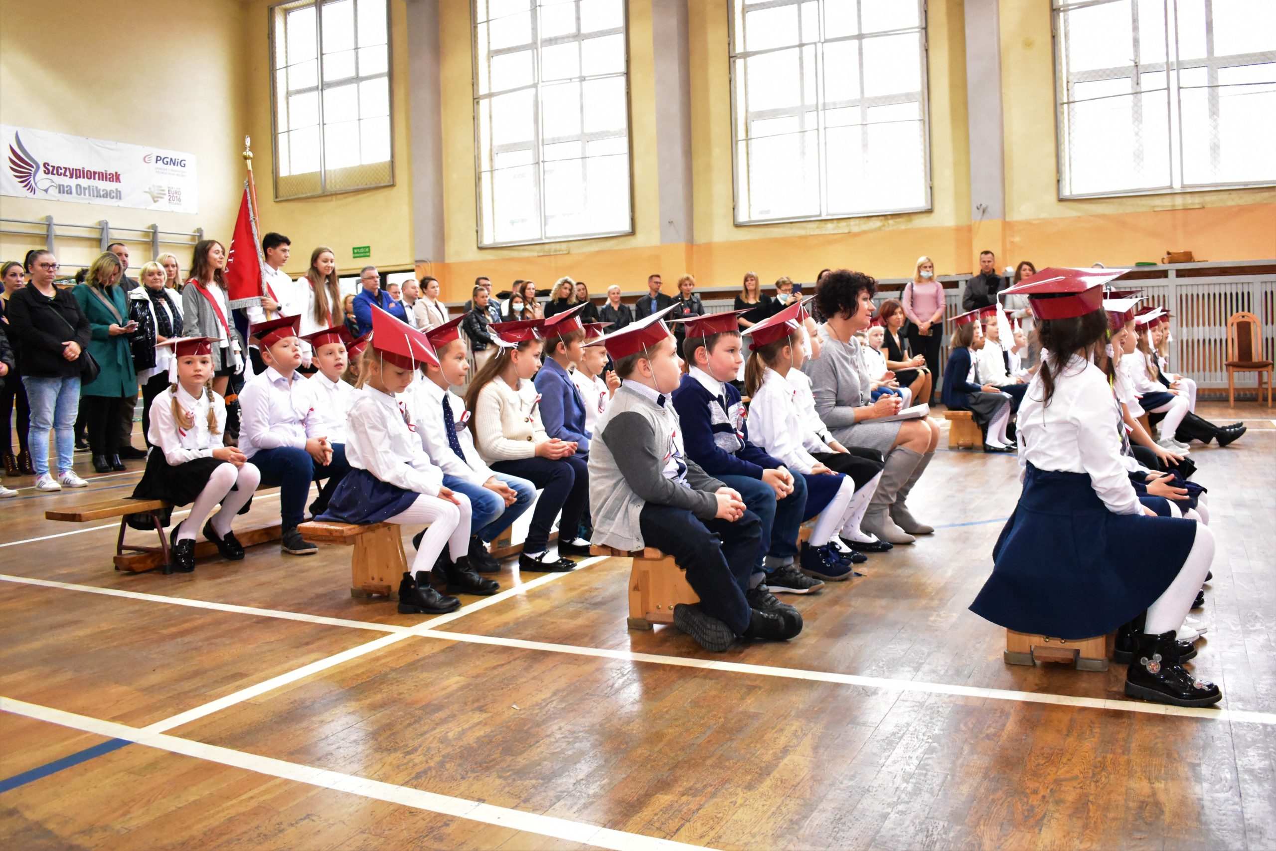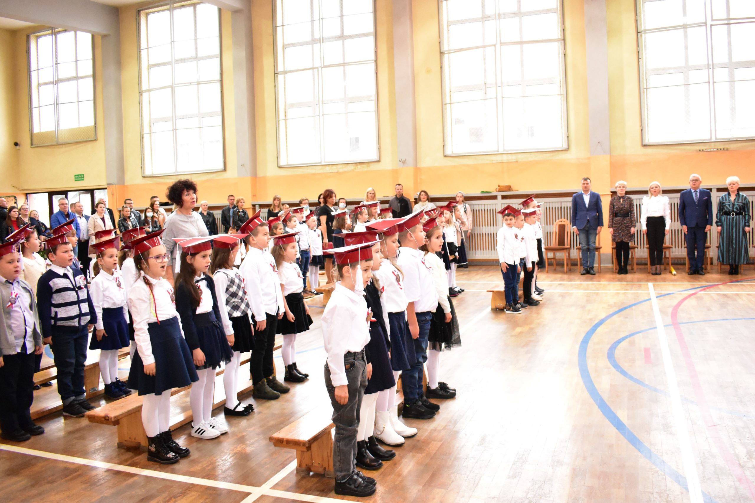 Uroczystość poprzedził krótki występ artystyczny. Przyszli uczniowie rozwiązywali zagadki, aby odzyskać ołówek potrzebny do pasowania. Dzieci podały prawidłowe rozwiązania, wprowadzono poczet sztandarowy, dzieci złożyły ślubowanie. Każdego pierwszoklasistę pasował na ucznia burmistrz Andrzej Katarzyniec. Dyrektor szkoły Dorota Stebelskaoraz naczelnik oświaty Mariusz Krugły wręczyli dzieciom drobne upominki. Każdy nowy uczeń otrzymał również tarczę szkolną.