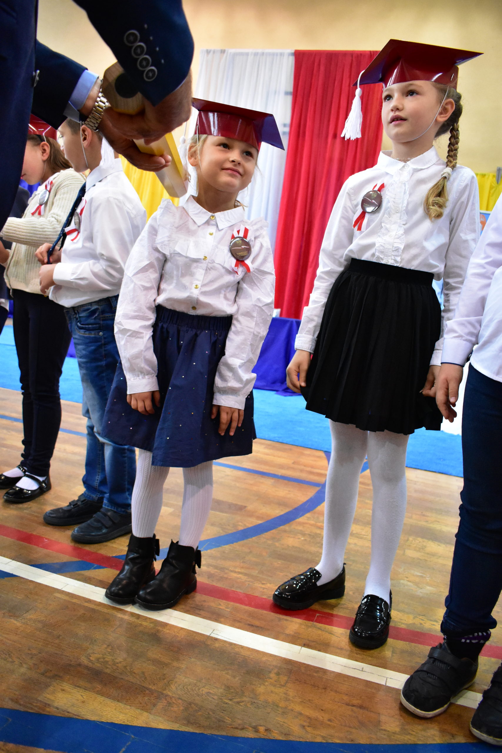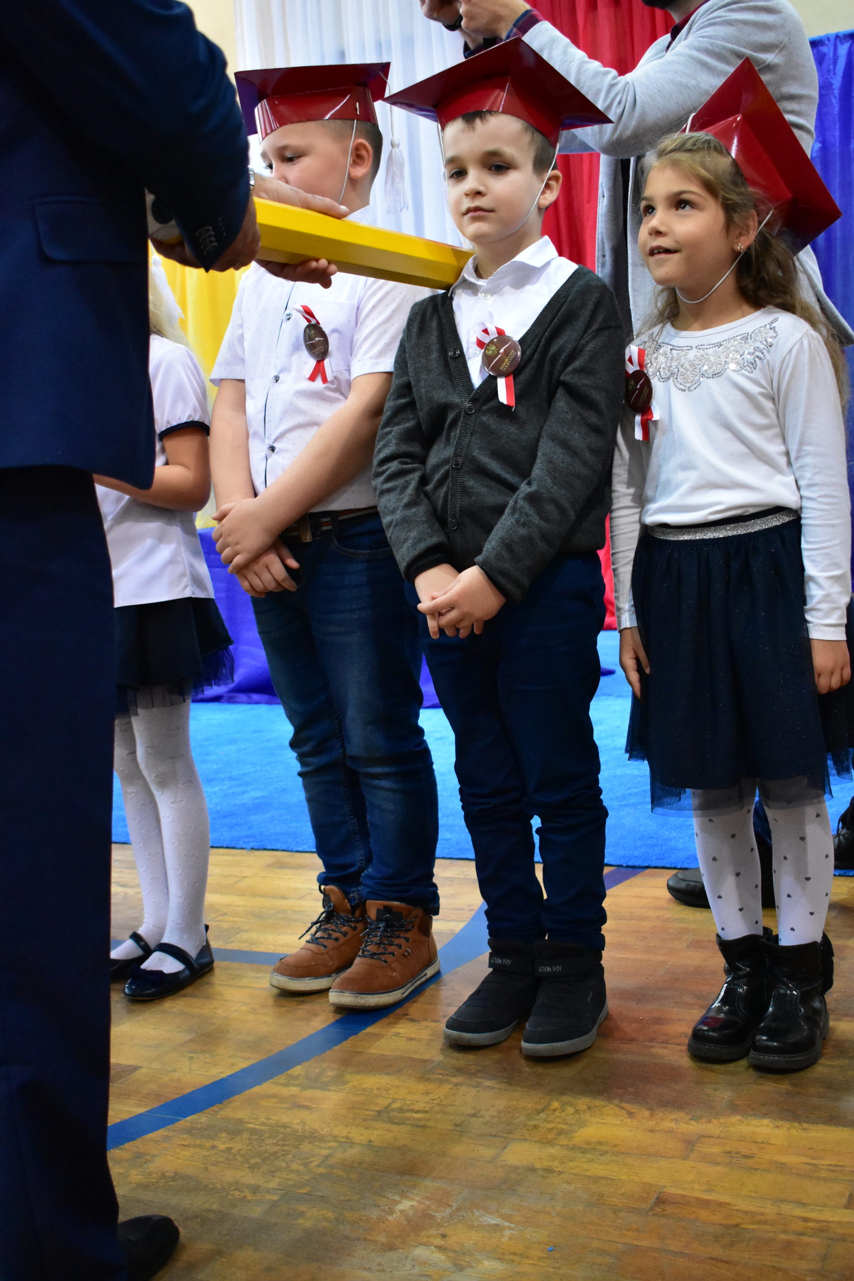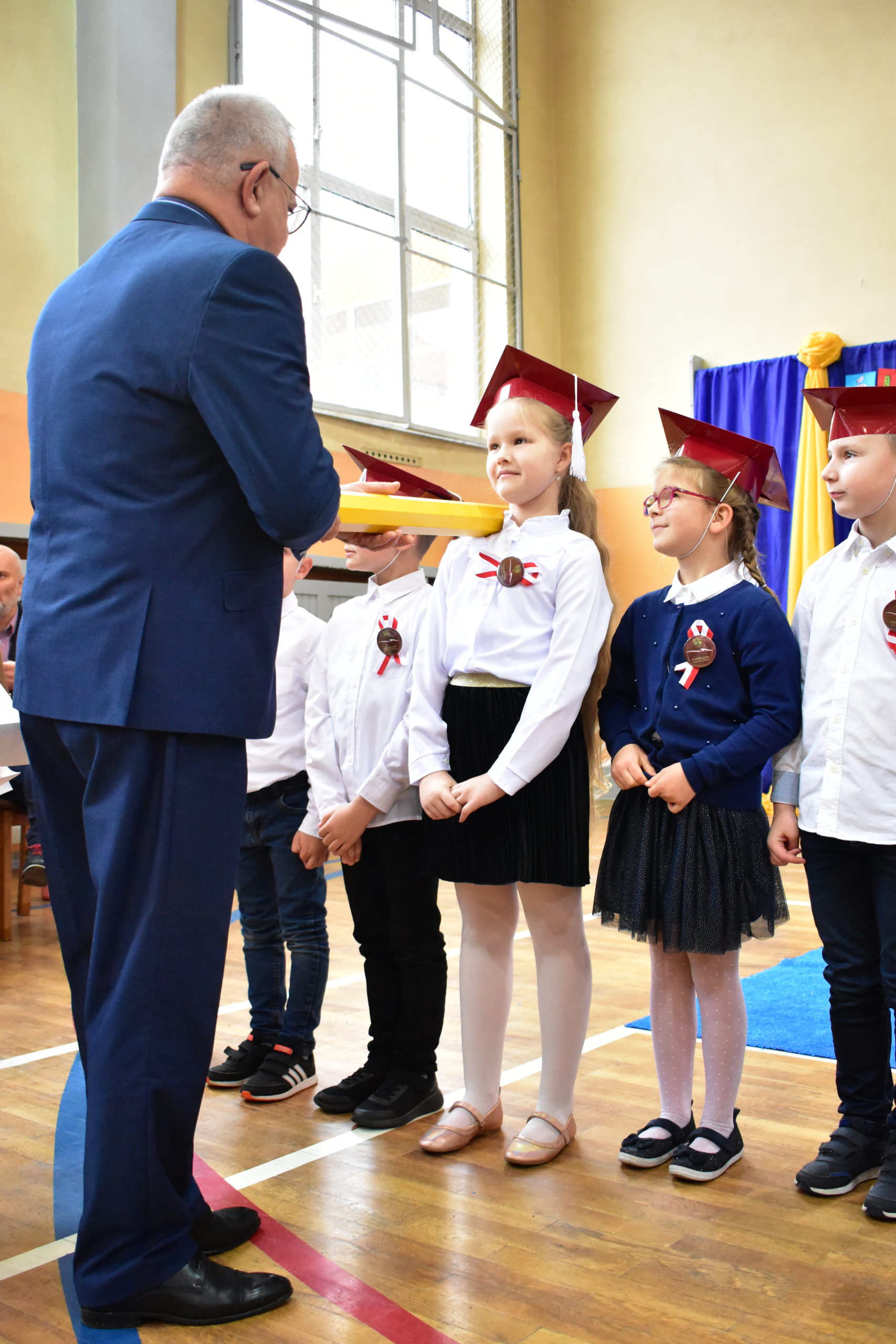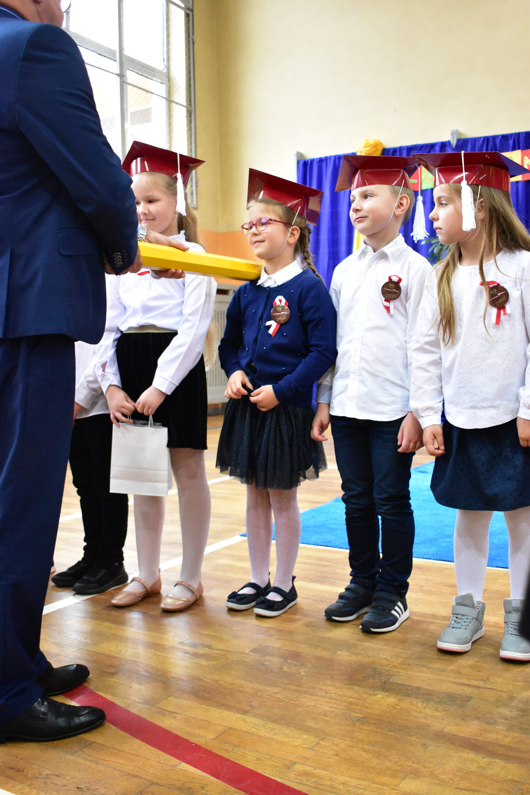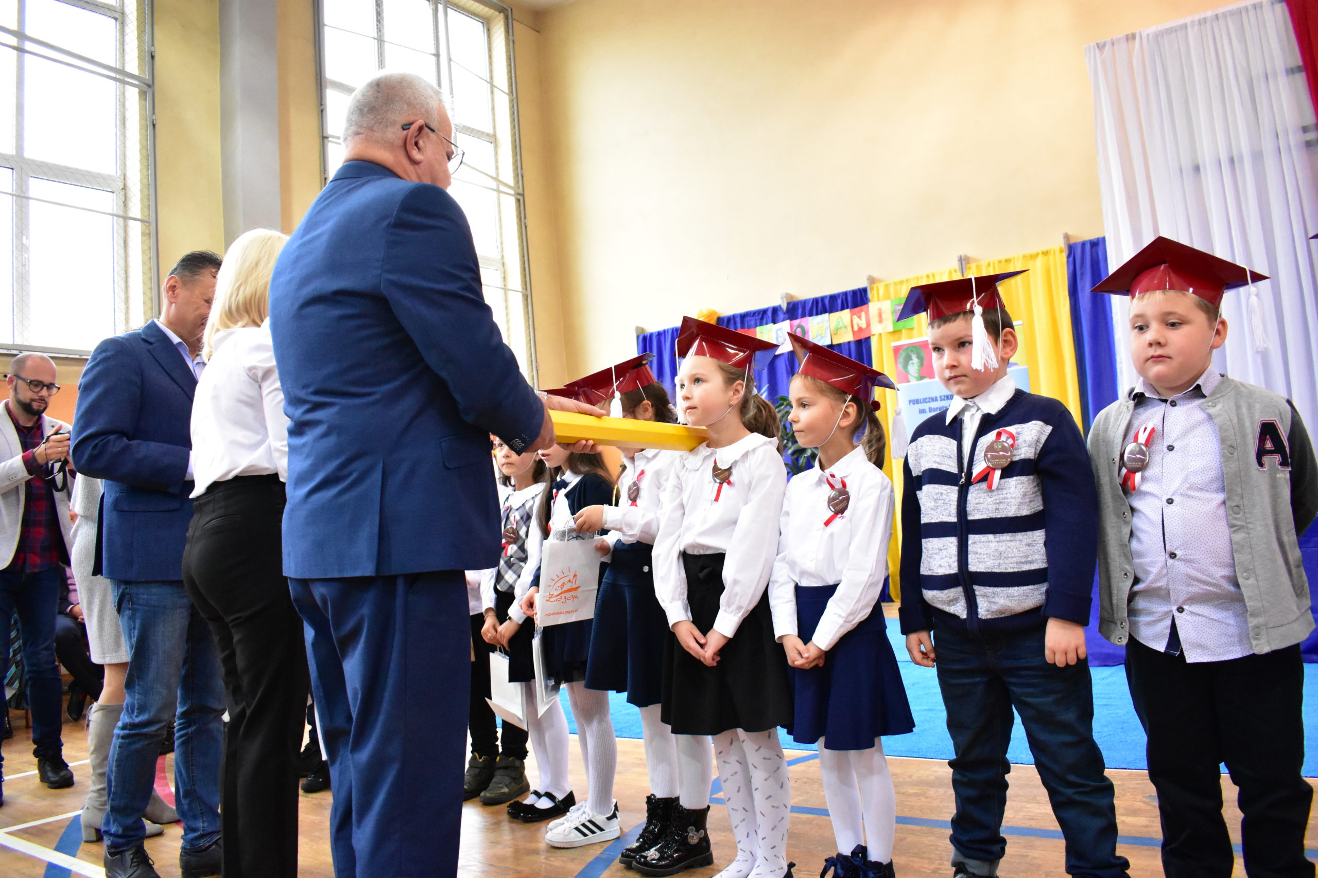 Uroczystość poprzedził krótki występ artystyczny. Przyszli uczniowie rozwiązywali zagadki, aby odzyskać ołówek potrzebny do pasowania. Dzieci podały prawidłowe rozwiązania, wprowadzono poczet sztandarowy, dzieci złożyły ślubowanie. Każdego pierwszoklasistę pasował na ucznia burmistrz Andrzej Katarzyniec. Dyrektor szkoły Dorota Stebelskaoraz naczelnik oświaty Mariusz Krugły wręczyli dzieciom drobne upominki. Każdy nowy uczeń otrzymał również tarczę szkolną.
