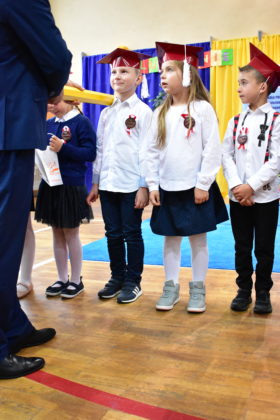 Na zakończenie uroczystości uczniowie klas starszych przygotowali występ, witając w ten sposób swoich młodszych kolegów w szeregach społeczności “Siódemki”. Pierwszoklasiści podziękowali opiekunom i gościom za udział w ceremonii.