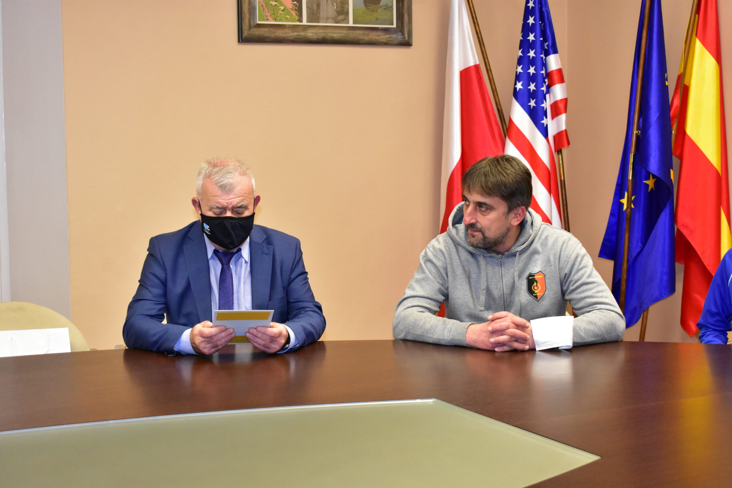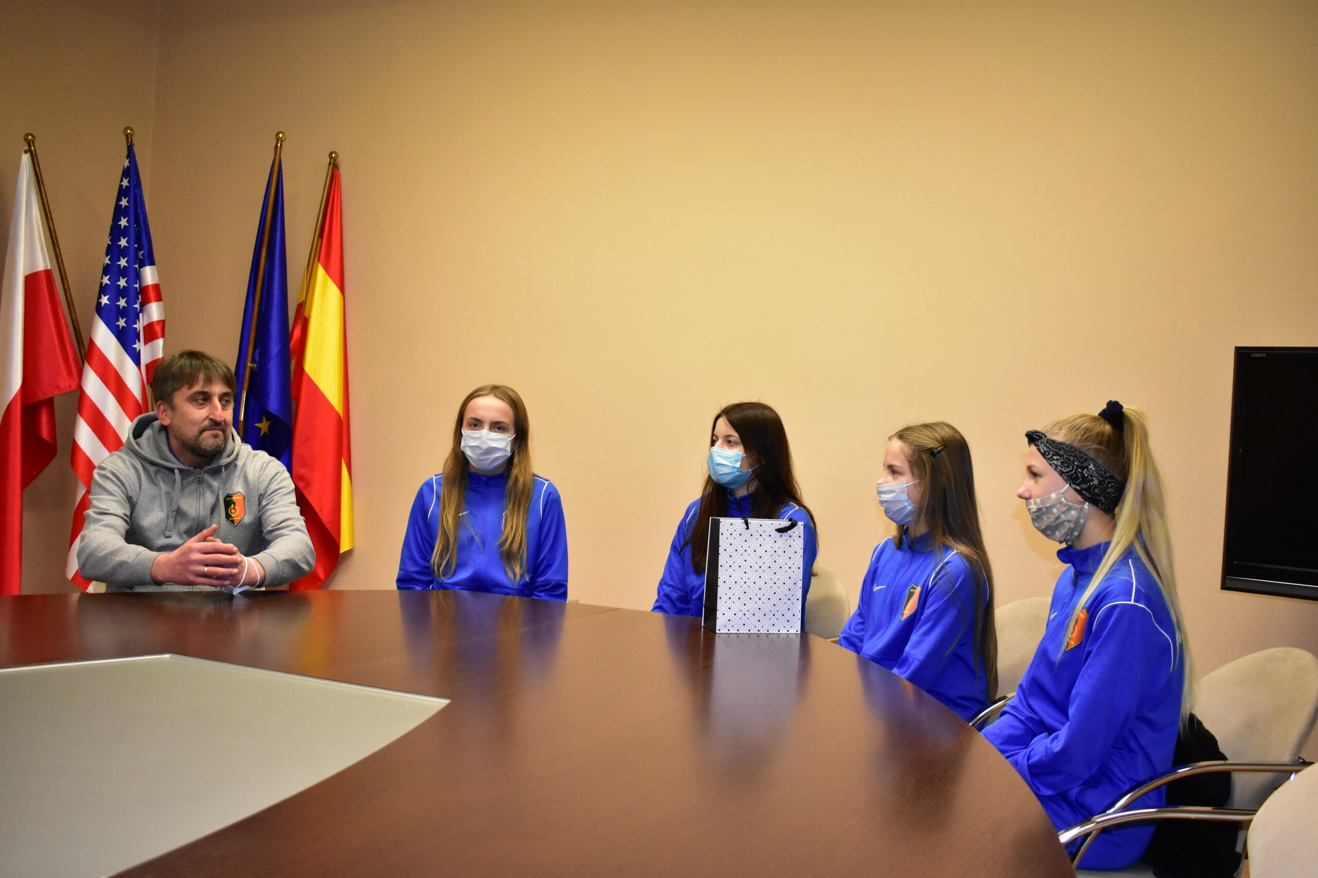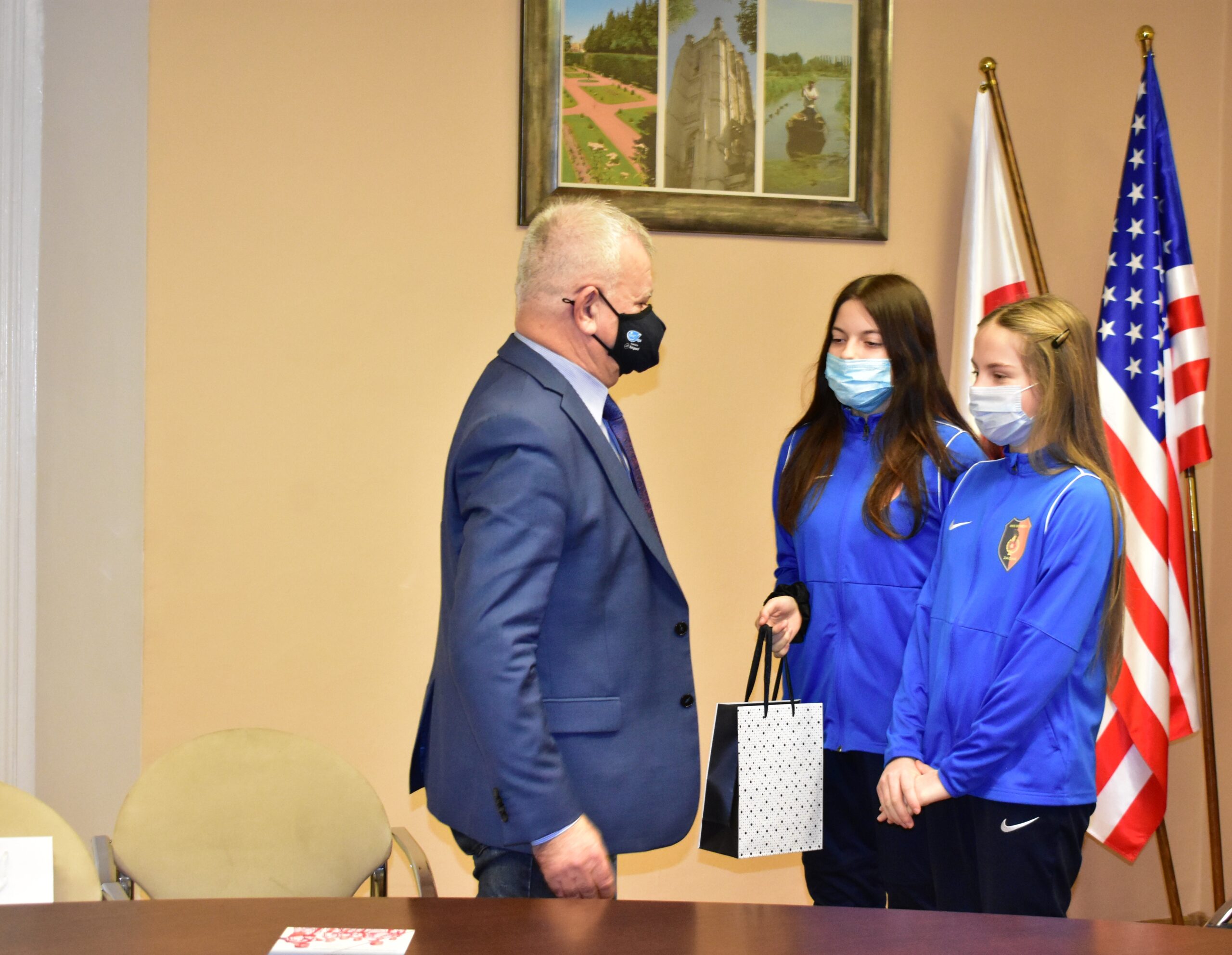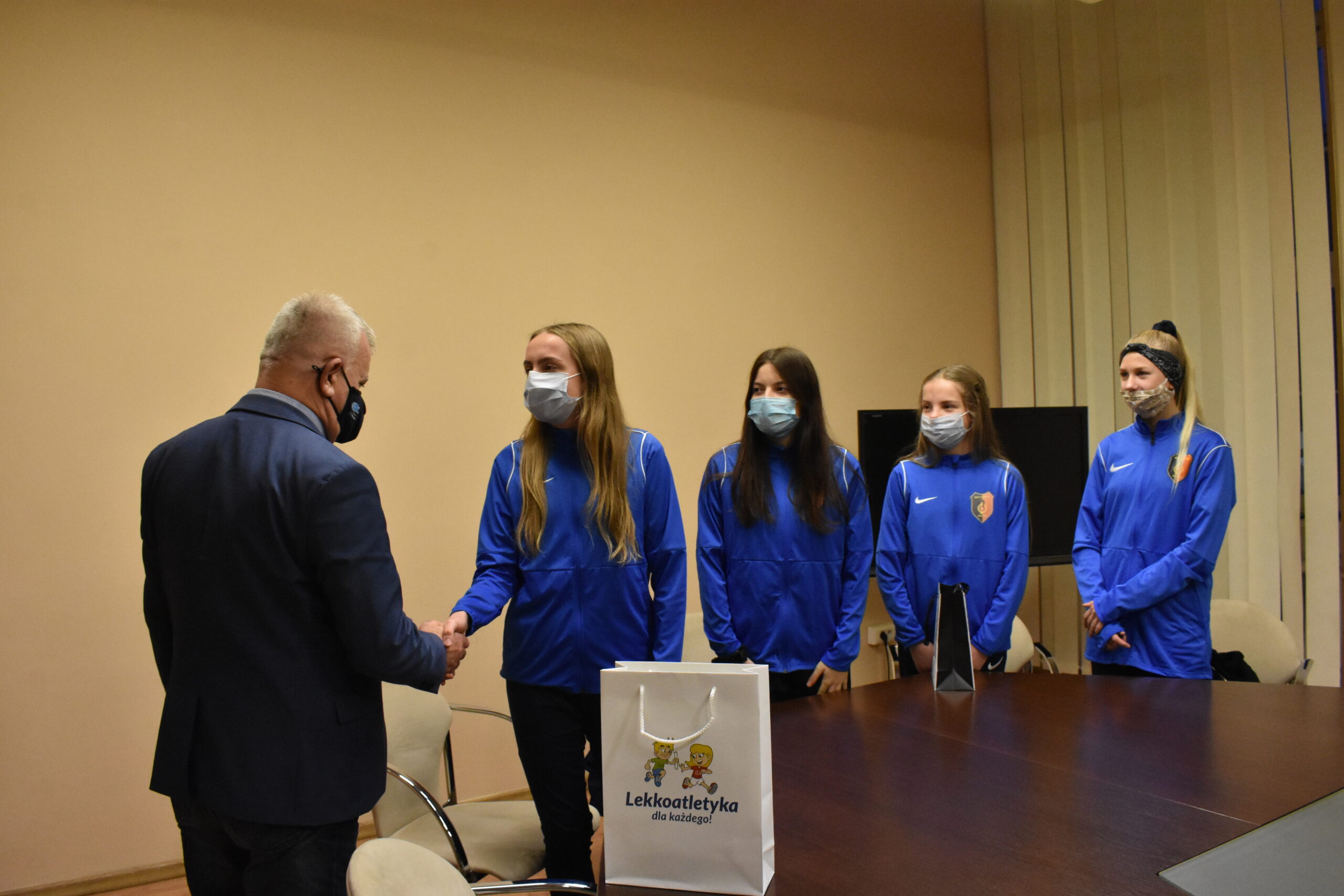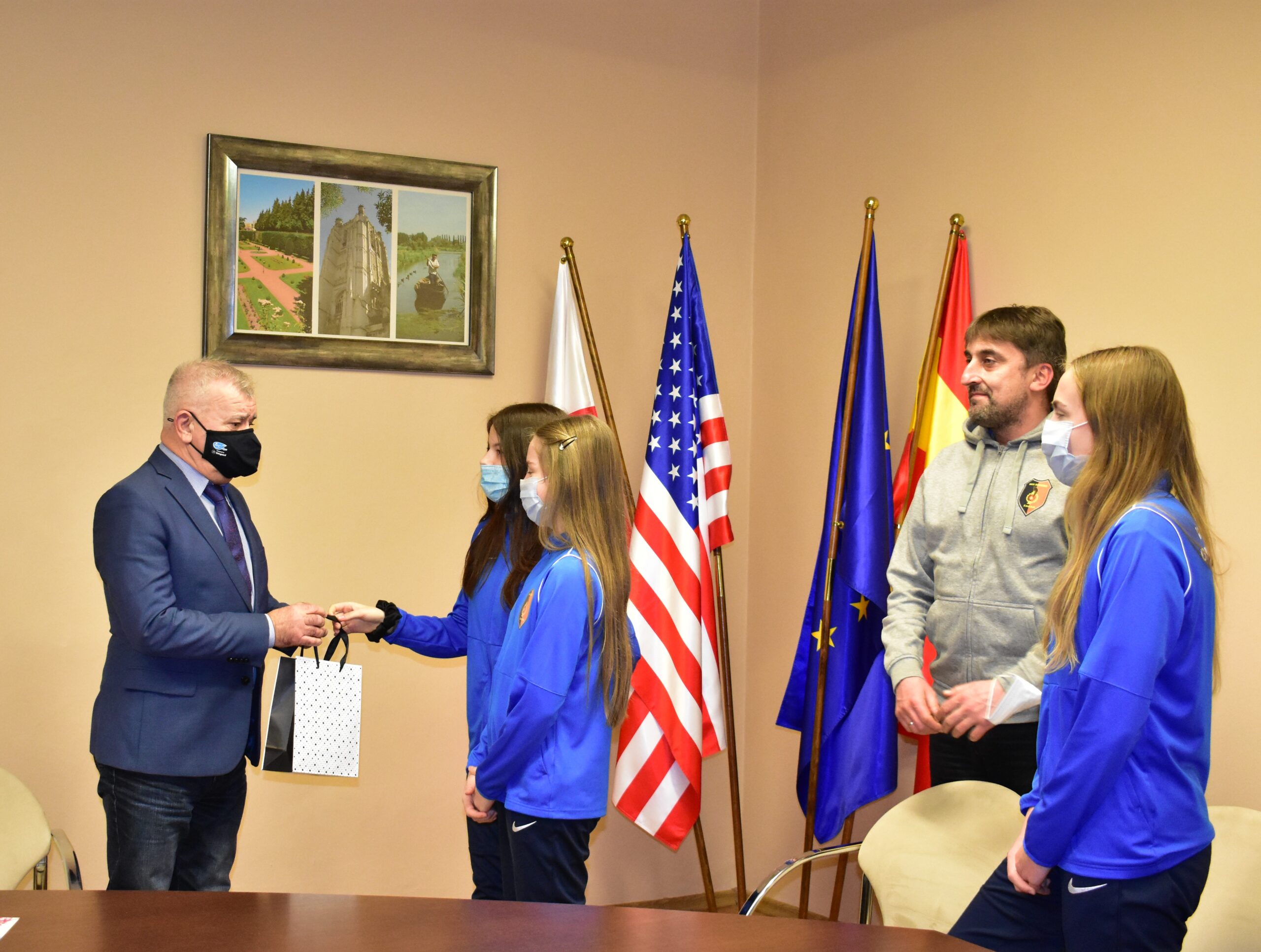 Zawodniczki podziękowały burmistrzowi za wsparcie sekcji. Przekazały koszulkę klubu oraz deklarację kolejnych sukcesów.