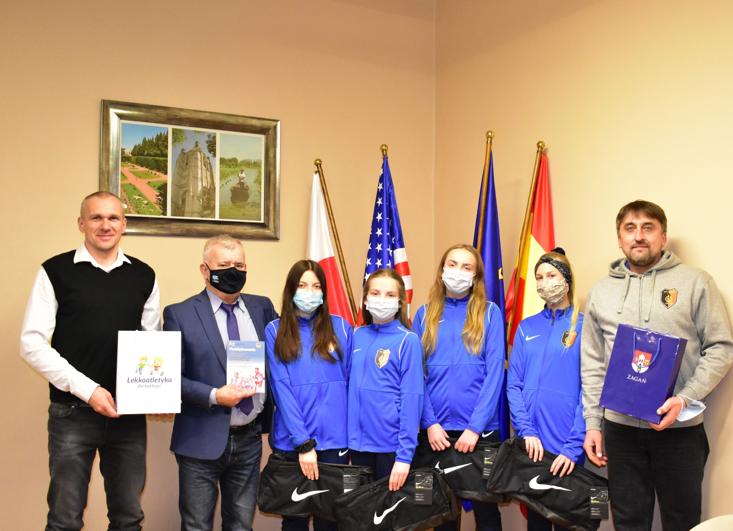 Na zaproszenie burmistrza Andrzeja Katarzyńca w żagańskim magistracie pojawiły się zawodniczki z sekcji lekkoatletycznej WKS “Sobieski” Żagań. Burmistrz podziękował trenerowi i zawodniczkom za udany sezon sportowy oraz wyniki, jakie udało się wypracować przez zaledwie dwa lata istnienia sekcji. Każda z zawodniczek zaprezentowała swoje najlepsze wyniki oraz dyscypliny, w jakich “czują się” najlepiej.