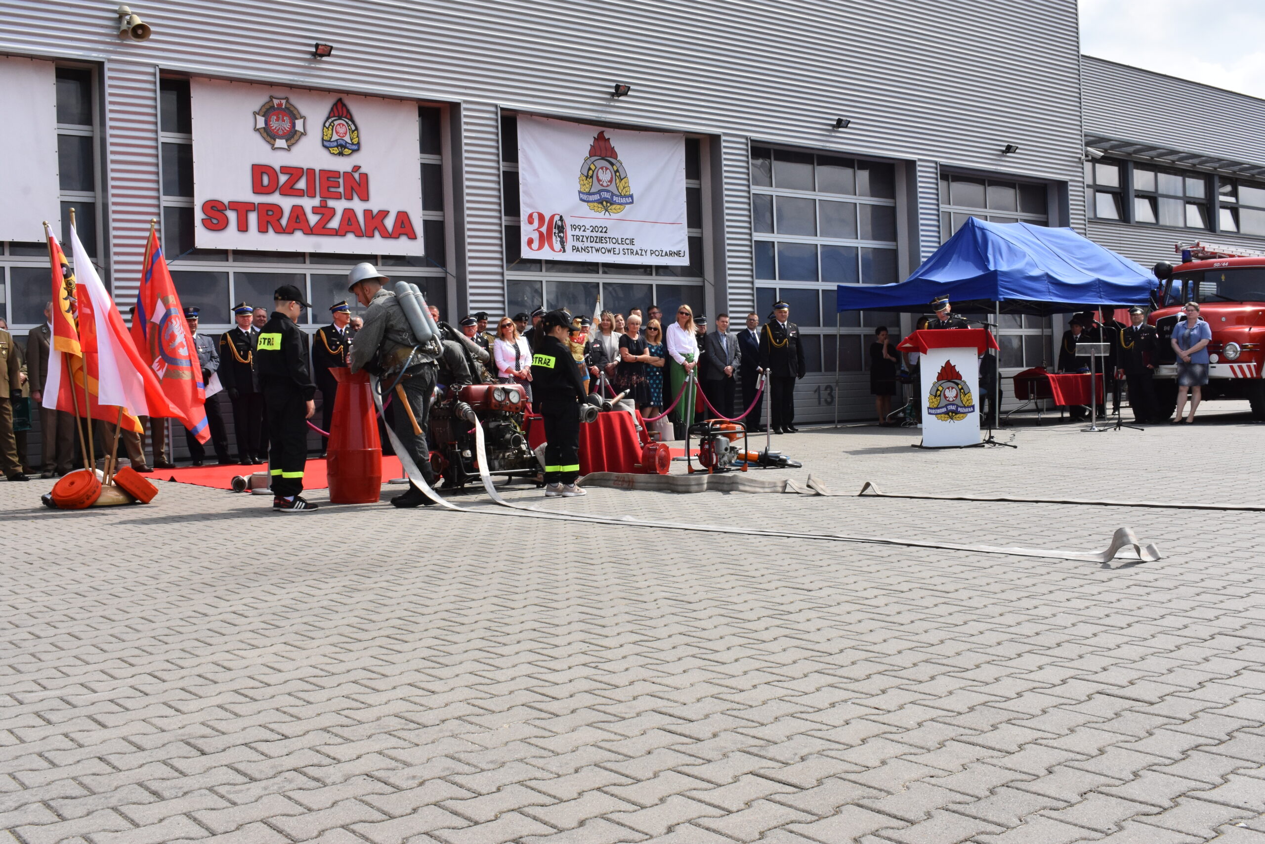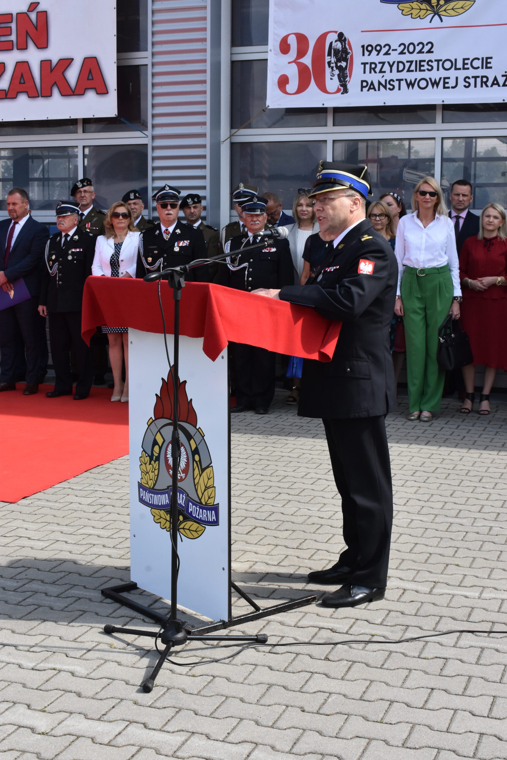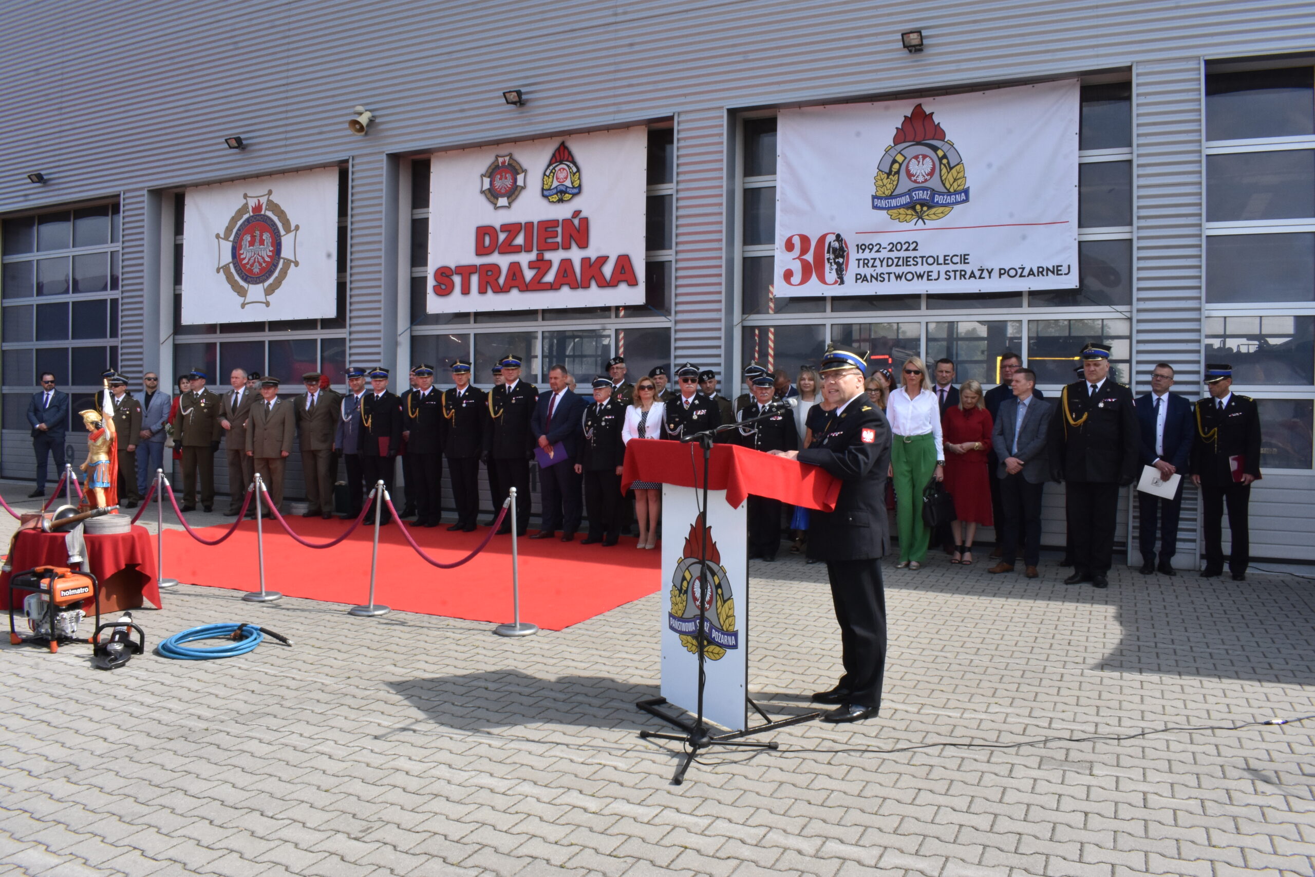 Brygadier Jan Marszałek przypomniał historię straży pożarnej, która w zawodowej formule funkcjonuje od 30 lat, kultywując tradycje przodków. Obecnie ważnym zadaniem straży jest unowocześnianie wyposażenia jednostki, aby profesjonalnie pełnić służbę “Bogu na chwałę, ludziom na ratunek”. Aby pomóc realizować tę misję, miasto przekazało 16 000 złotych na zakup nowego wozu dla żagańskiej komendy. W trakcie uroczystości wręczono medale okolicznościowe, odznaczenia oraz awanse na wyższe stopnie służbowe.