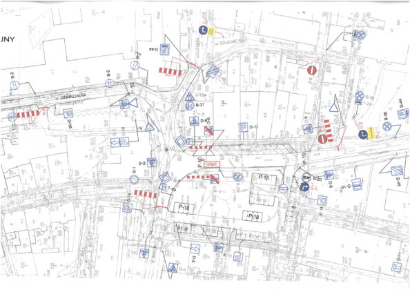 - skierowanie ruchu pojazdów wyjeżdżających z parkingu zlokalizowanego na placu Słowiańskim w kierunku ulicy Szprotawskiej,