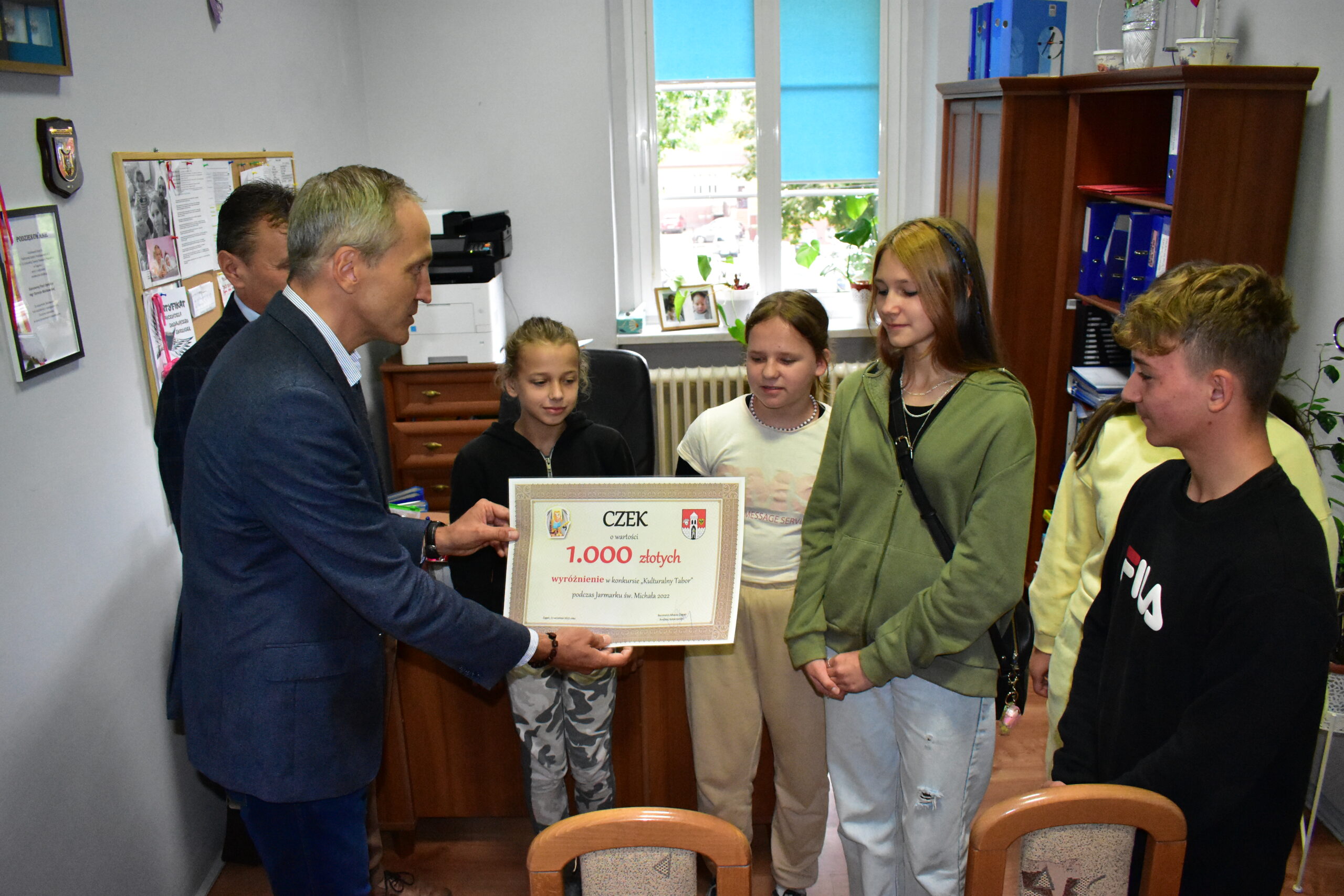 15 września 2022 roku zastępca burmistrza Sebastian Kulesza spotkał się z uczniami klas VI Publicznej Szkoły Podstawowej nr 2, aby przekazać na ich ręce czek o wartości 1000 złotych w podziękowaniu za przebrania w trakcie tegorocznego Jarmarku św. Michała. Sebastian Kulesza potwierdził, że przygotowane przez młodzież pomysły bardzo spodobały się burmistrzowi Andrzejowi Katarzyńcowi, który zdecydował o wyróżnieniu ich kreatywności. Przyznane dzieciom wyróżnienie ma przede wszystkim zachęcić do dalszego rozwijania swoich pomysłów i szykowania równie ciekawych przebrań na kolejne jarmarkowe korowody.