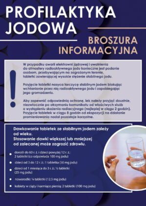 W ramach działań z zakresu zarządzania kryzysowego i ochrony ludności, w związku z informacjami medialnymi dotyczącymi walk w rejonie Zaporoskiej Elektrowni Atomowej, w ubiegłym tygodniu do komend powiatowych Państwowej Straży Pożarnej przekazano tabletki zawierające jodek potasu. Jest to standardowa procedura, przewidziana w przepisach prawa i stosowana na wypadek wystąpienia ewentualnego zagrożenia radiacyjnego.
