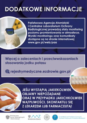 Jednocześnie informujemy, że w obecnej chwili takie zagrożenie nie występuje, a sytuacja jest na bieżąco monitorowana przez Państwową Agencję Atomistyki. Służby odpowiedzialne za bezpieczeństwo państwa są w ciągłej gotowości, a odpowiednia ilość jodku potasu jest zabezpieczona dla każdego, kto będzie tego potrzebował.