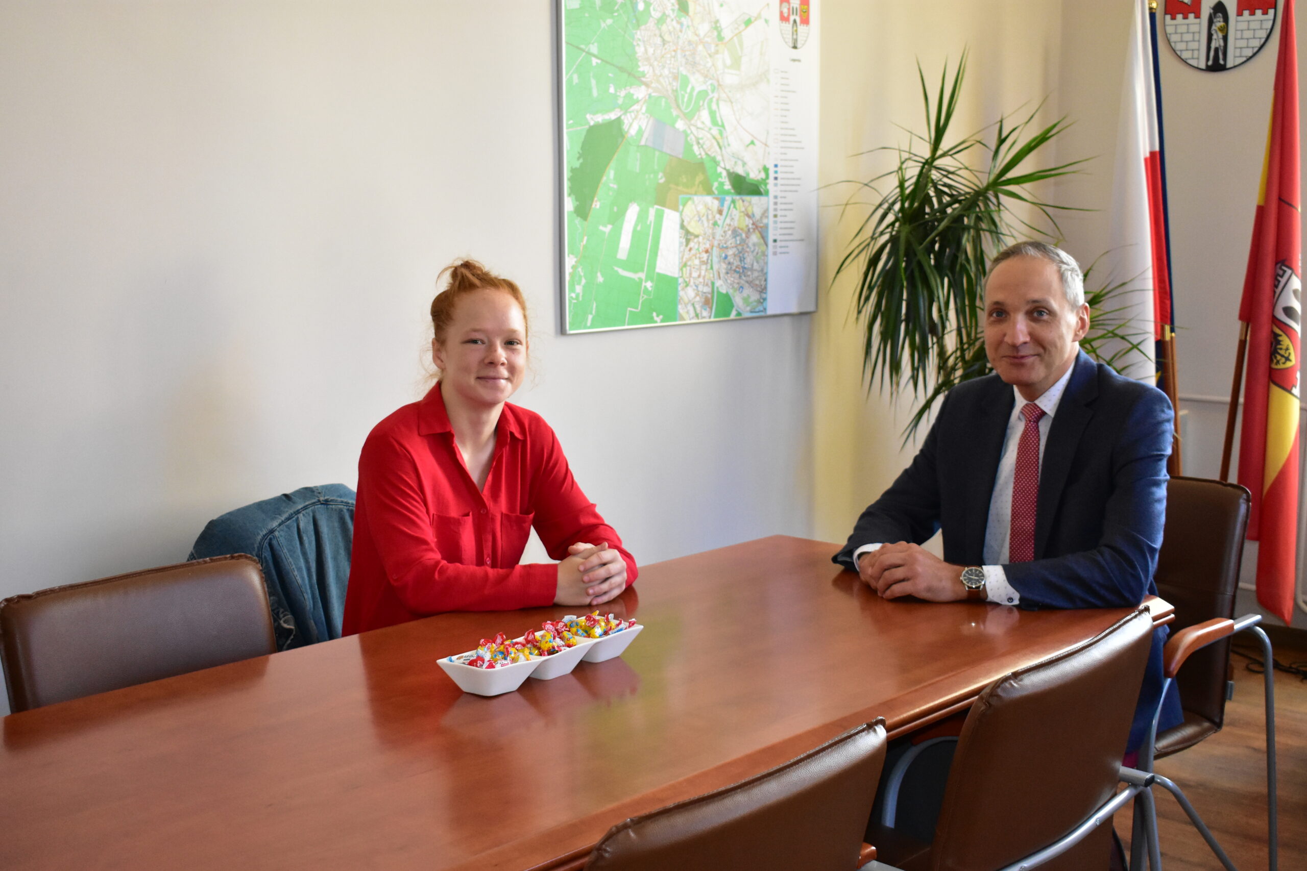 Zastępca Burmistrza Żagania Sebastian Kulesza spotkał się z żagańską zawodniczką sportów walki Dominiką Chabiniak, która marzy o udziale w Pucharze Świata Muaythai w Antalya w Turcji. Zawody odbędą się w dniach od 22 do 28 listopada. Dominika otrzymała na nie powołanie do Reprezentacji Polski przez Polski Związek Muaythai.