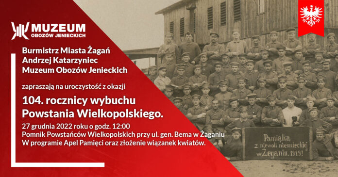Burmistrz Miasta Żagań zaprasza na uroczystość z okazji 104. rocznicy wybuchu Powstania Wielkopolskiego.