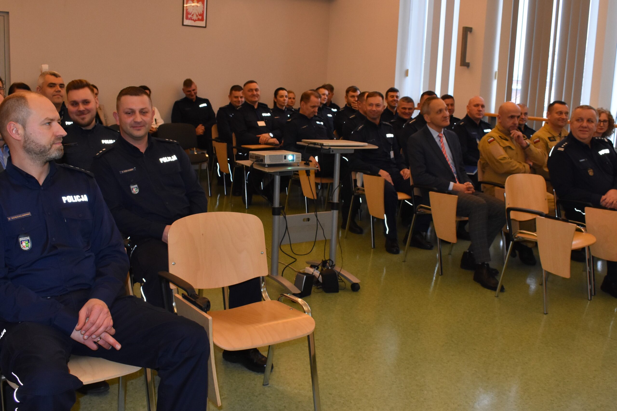 Sebastian Kulesza dziękując za zaproszenie na spotkanie podziękował policjantom za ich codzienną służbę, podnoszącą nasze poczucie bezpieczeństwa. Gospodarz miasta podziękował również za udział w miejskich uroczystościach i imprezach masowych.