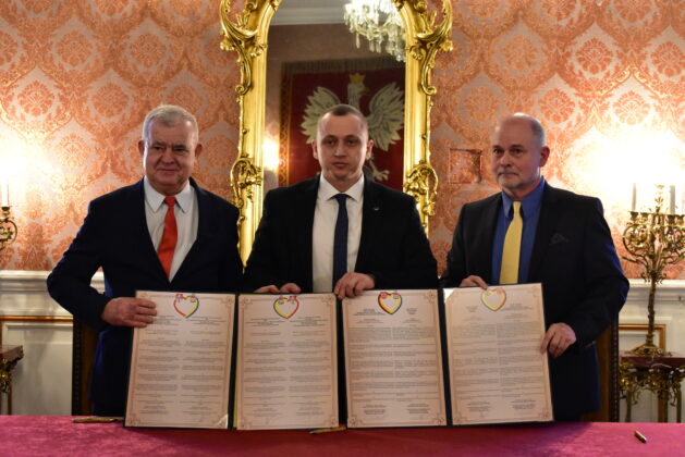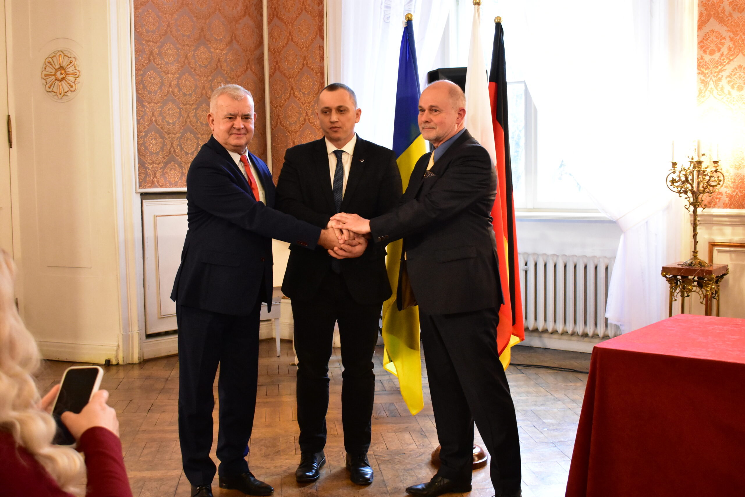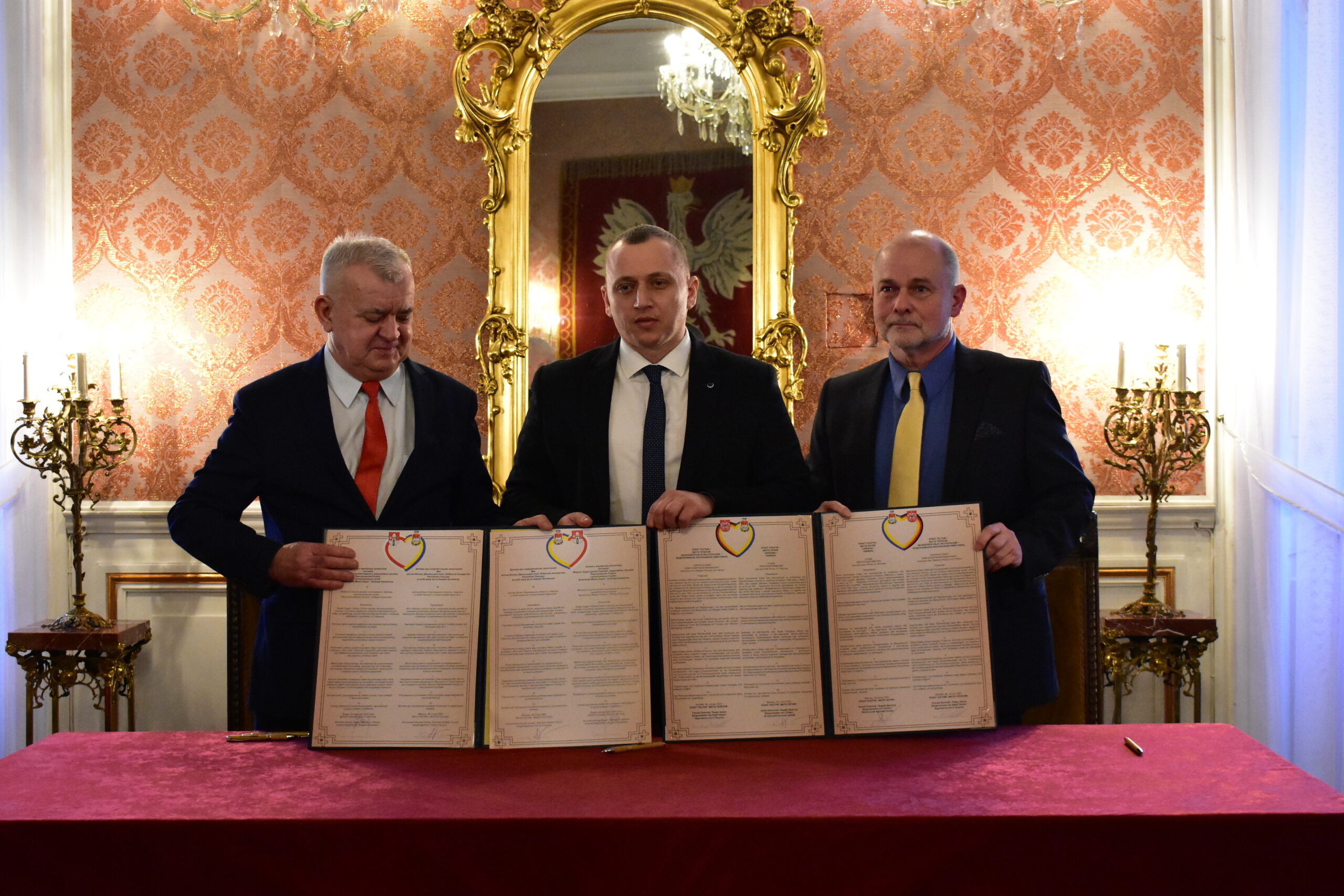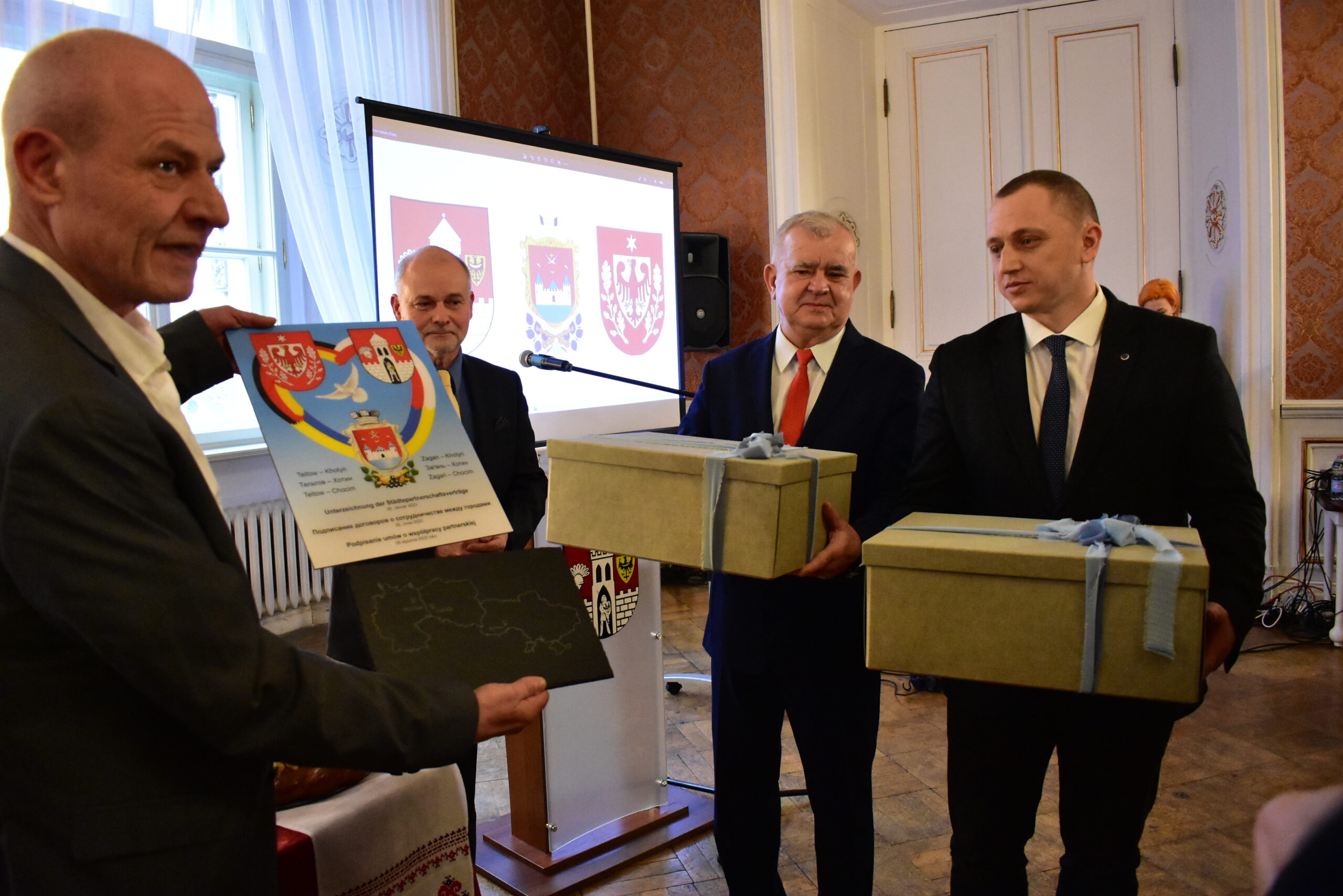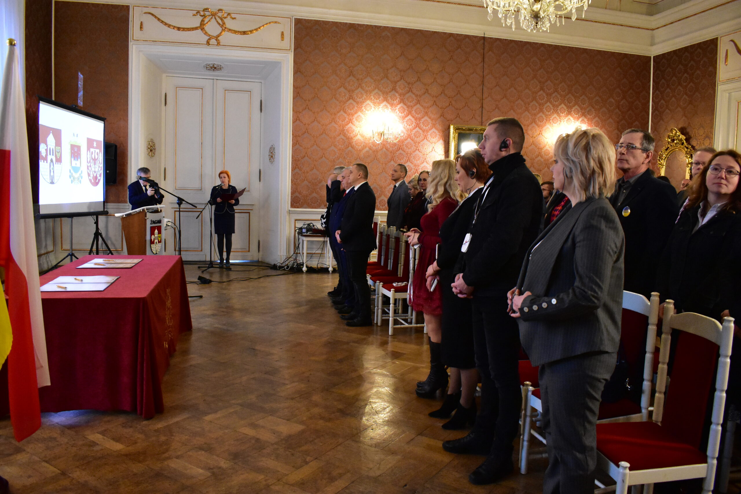 Burmistrz Żagania przeczytał również list Prezesa Rady Ministrów Mateusza Morawieckiego, który podkreślił, jak ważnym przykładem solidarności jest porozumienie trzech miast. Solidarności, która w polskiej historii ma ogromne tradycje i jeszcze większą moc zmieniania rzeczywistości.