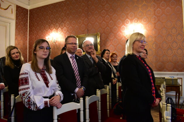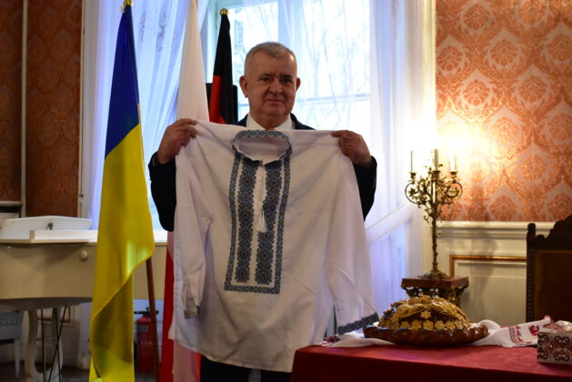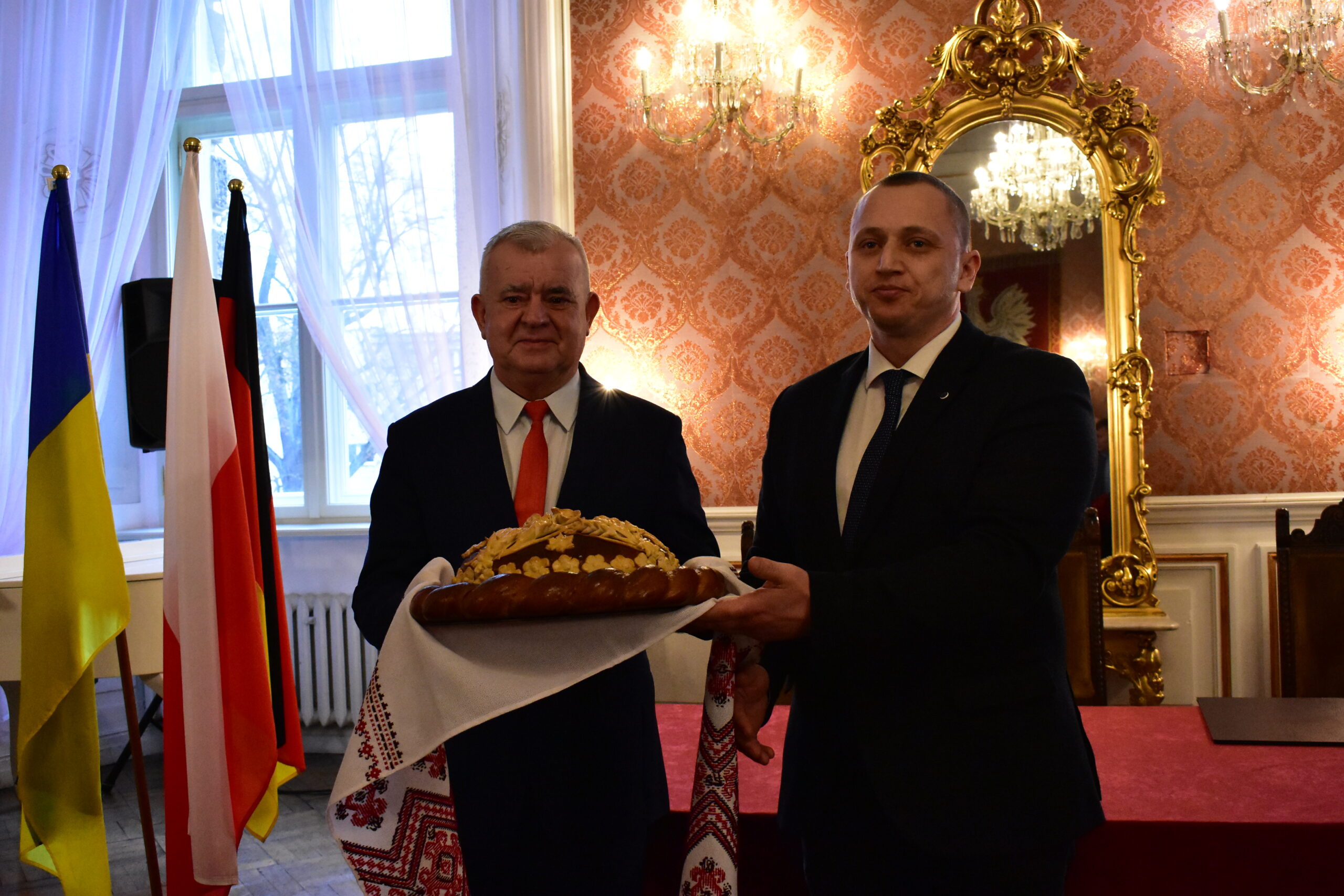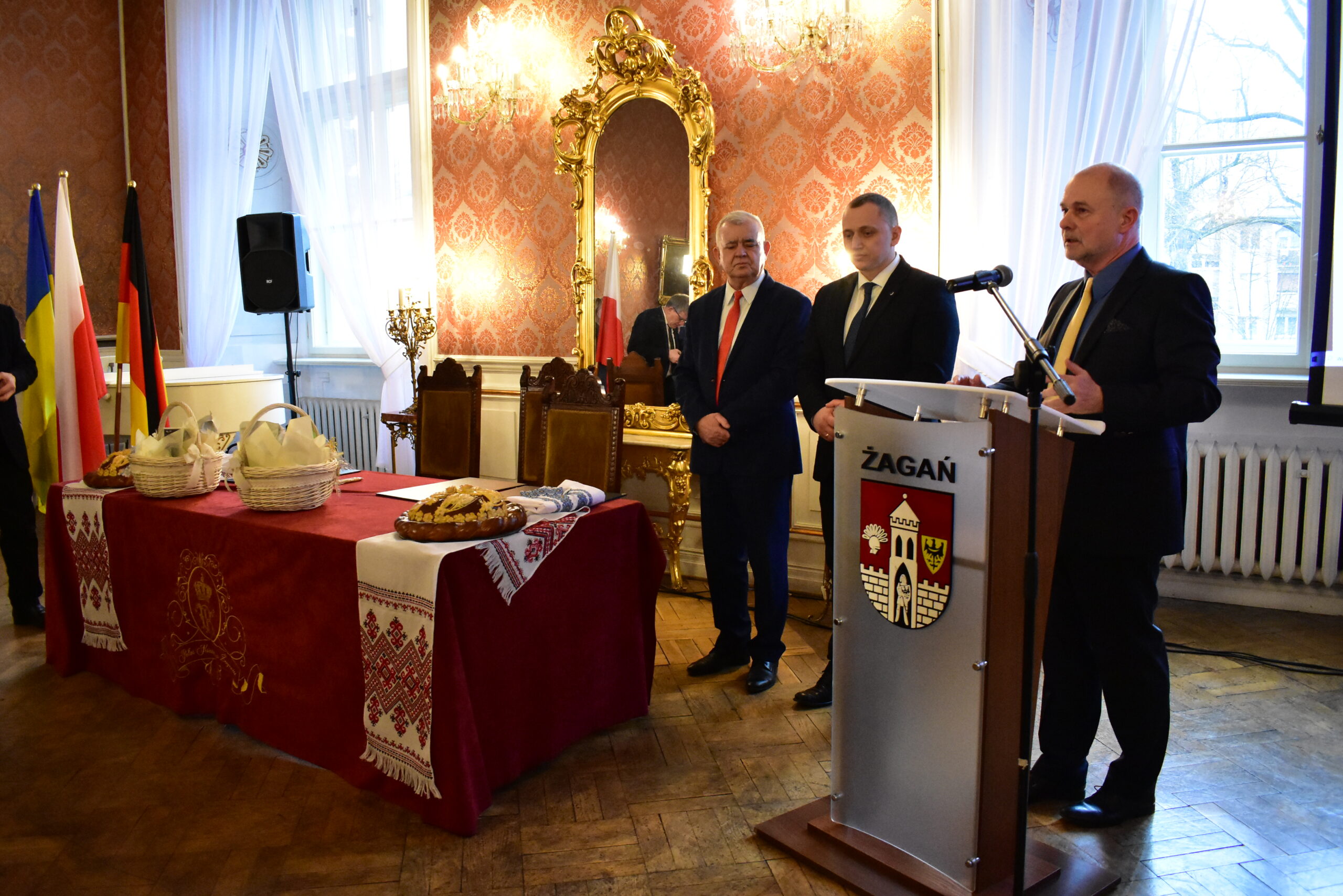 Burmistrz Chocimia Andrij Dranczuk opowiedział, jak w ciągu jednego dnia życie jego rodaków zostało postawione na głowie. Pomimo iż jego miasto nie jest ostrzeliwane, od początku zmaga się z falą uchodźców. Wszelkie podejmowane starania (w tym aktywność poza granicami Ukrainy) skierowane są na zapewnienie ochrony i pomocy ludziom szukającym schronienia przed wojną. Andrij Dranczuk zaprezentował przejmujący film ukazujący zniszczenia jego kraju oraz działania, jakie podejmuje jego sztab w ramach pomocy przybywającym do miasta uchodźcom. W geście przyjaźni gospodarz Chocimia wręczył burmistrzom Żagania i Teltow chleb oraz narodowe ukraińskie koszule. Podziękował za wszystko, co wydarzyło się dotychczas i wszystko, co wspólnie przed nami.