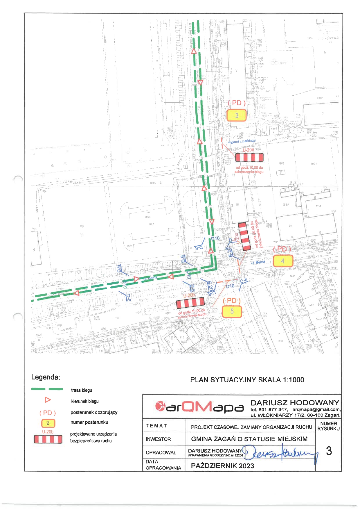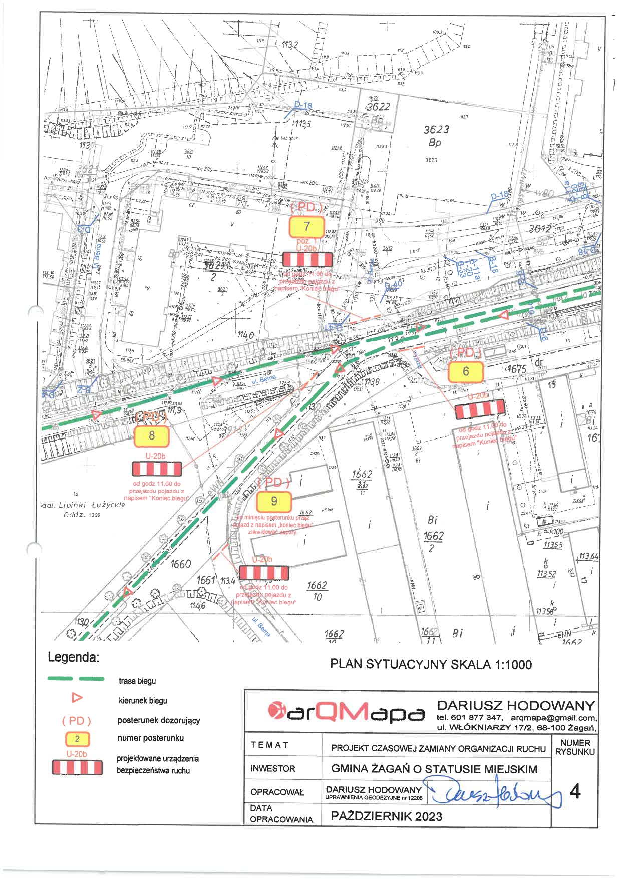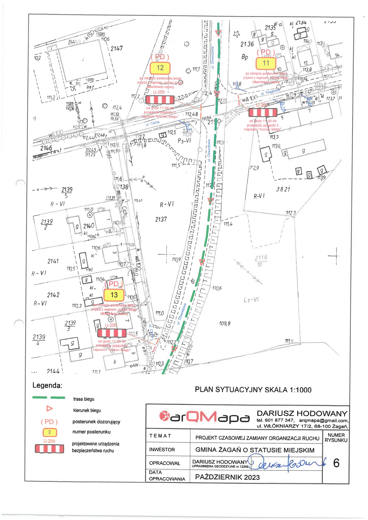 11 listopada 2023 roku w godz. od 10.00 do 13.00 zostanie wprowadzona czasowa zmiana organizacji ruchu w ciągu dróg gminnych – na ulicach M. Konopnickiej, E. Plater, Gen. Bema, Miodowa, Węglowa Cicha, Wesoła oraz w ciągu dróg powiatowych – na ulicy Kochanowskiego (4507F) i Obwodowej (4514F). Czasowa zmiana w istniejącej organizacji ruchu ma na celu zabezpieczenie trasy biegu – zapewnienie sprawnego i bezpiecznego ruchu uczestników IX Biegu Niepodległości ulicami Żagania.
