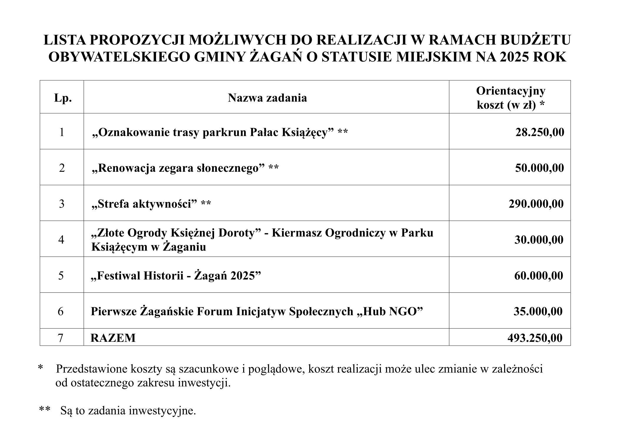 Zgodnie z harmonogramem Żagańskiego Budżetu Obywatelskiego 2025 publikujemy wstępną listę zakwalifikowanych do głosowania projektów.