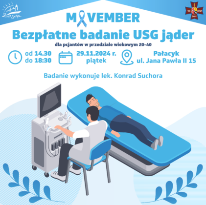 W dniu 29 listopada zapraszamy Panów w wieku 20 – 40 na bezpłatne badania USG jąder.