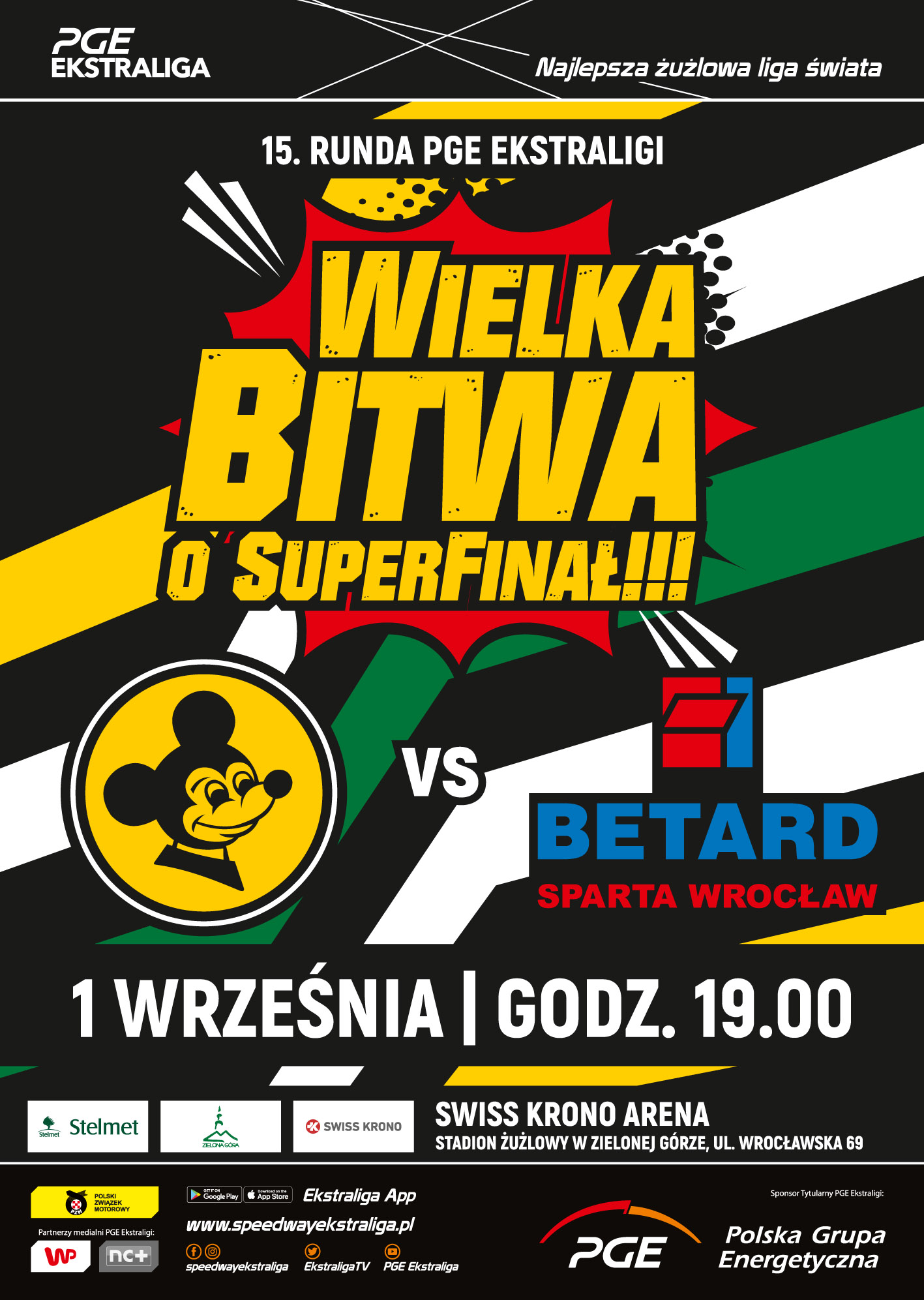 Zapraszamy na półfinał rozgrywek ligi żużlowej. 1 września o godzinie 19.00 zapraszamy na mecz STELMET FALUBAZ ZIELONA GÓRA vs. BETARD SPARTA WROCŁAW na stadionie żużlowym w Zielonej Górze.