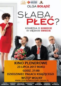 W najbliższą niedzielę (23.07) o godz. 21:00 na dziedzińcu pałacu kolejny plenerowy seans ! Wyświetlimy polską komedię pt. "Słaba Płeć" - wstęp wolny Opis filmu: Zośka (Olga Bołądź) jest atrakcyjna, wykształcona i wie, czego chce. Rodzinne miasteczko zamieniła na warszawską korporację i pnie się po drabinie sukcesu, choć do raju jeszcze droga daleka. Zamiast luksusowego […]