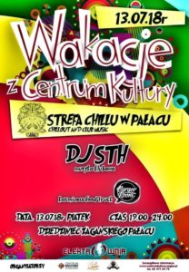 13 lipca zapraszamy na drugą odsłonę Strefy Chillu w Pałacu. W godzinach od 19 do 24 relaksujemy się na leżakach przy dźwiękach muzyki klubowej. W strefie znajdziecie coś do jedzenia i picia, doskonały klimat do zabawy.