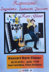 Centrum Kultury zaprasza w niedzielę 28 października o godz. 17.00 na koncert Karo Glazer, w ramach Zaduszek Jazzowych. Koncert odbędzie się w sali Familijnej Pałacu Książęcego, wstęp wolny.