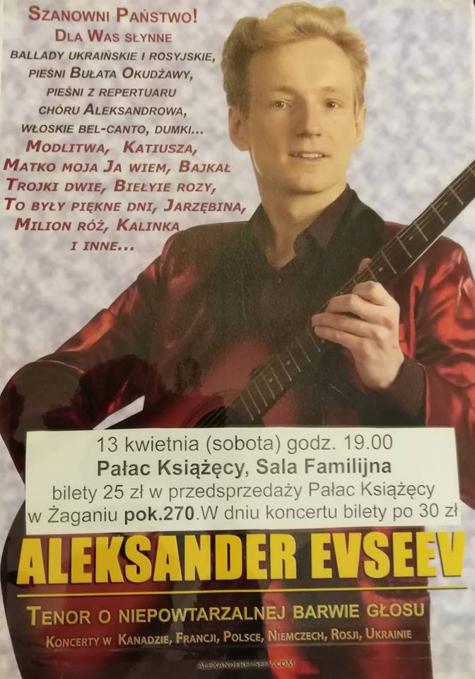 Aleksander Jevsejev tenor o niepowtarzalnej barwie głosu zaśpiewa pieśni Bułata Okudżawy oraz Chóru Aleksandrowa, znane pieśni ludowe rosyjskie i ukraińskie takie jak : Modlitwa,Balonik,Kalinka,Białe róże, Oczy czarne,Hej sokoły, Pierwsza miłość i wiele innych.
