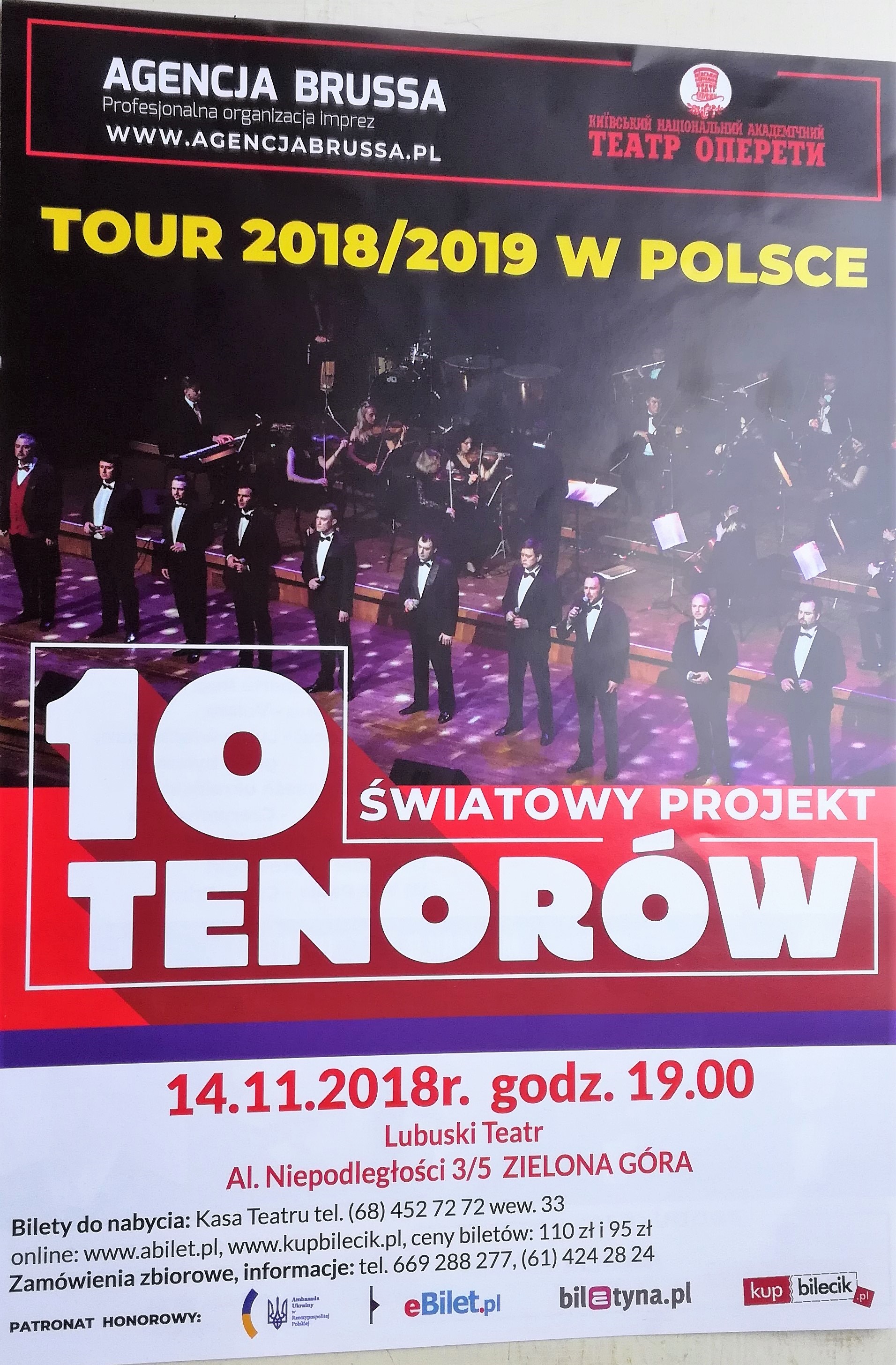 W sobotę 14 listopada o godz. 19.00 Lubuski Teatr w Zielonej Górze zaprasza na koncert 10 tenorów z towarzyszeniem orkiestry pod dyrekcją Igora Jaroshenki.