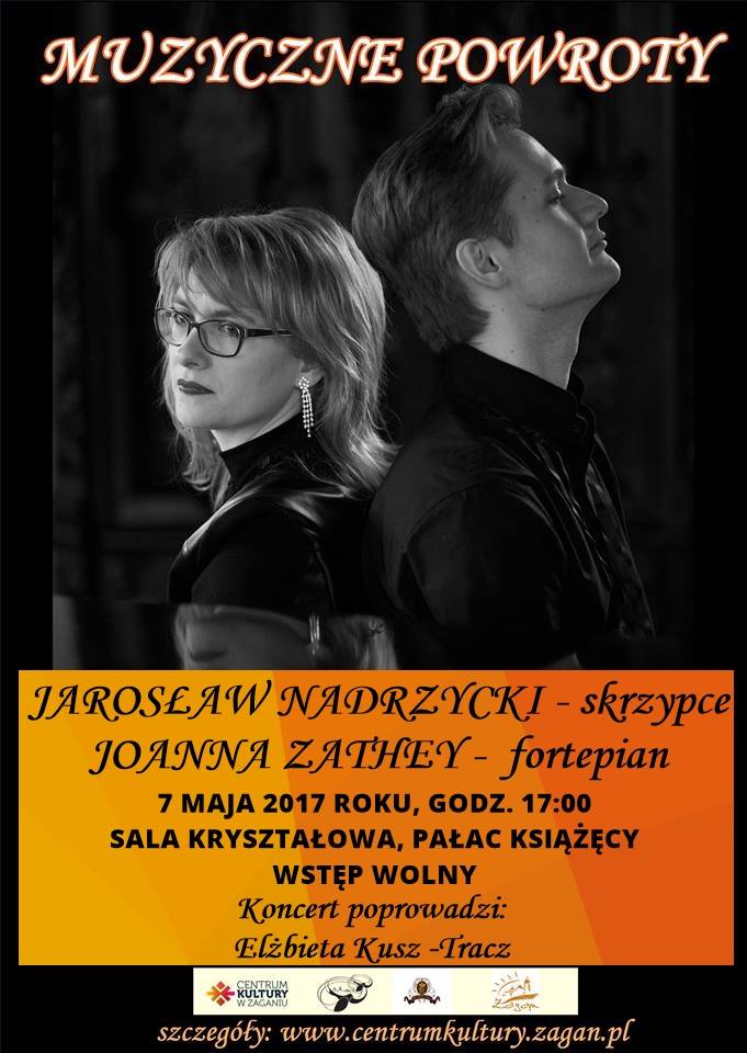 Program koncertu “Muzyczne powroty” Jarosława Nadrzyckiego (skrzypce) oraz Joanny Zathey (fortepian):