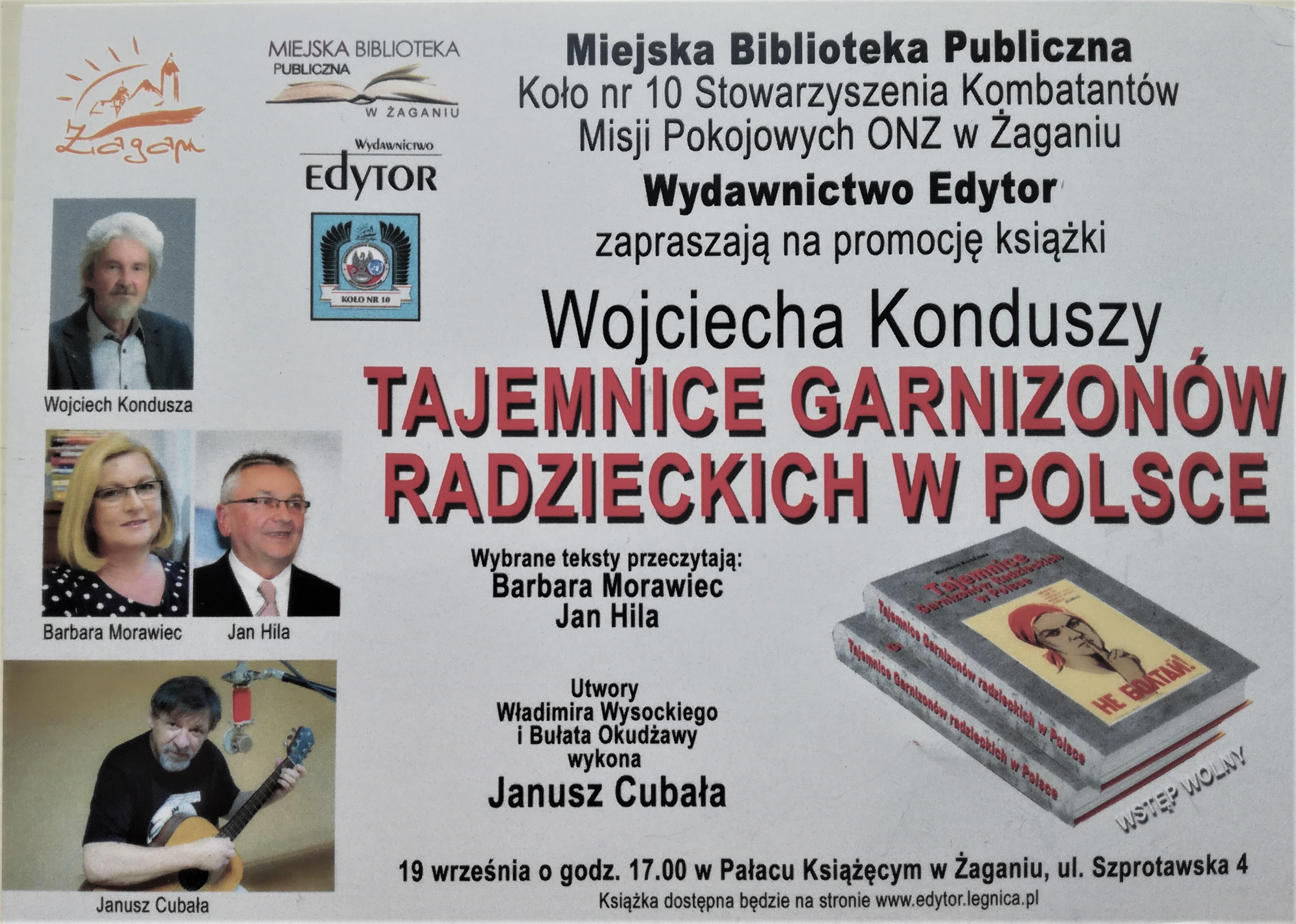 W środę 19 września o godz. 17.00 w czytelni Miejskiej Biblioteki Publicznej odbędzie się spotkanie autorskie z doktorem Wojciechem Konduszą, autorem książki „Tajemnice garnizonów radzieckich w Polsce”.