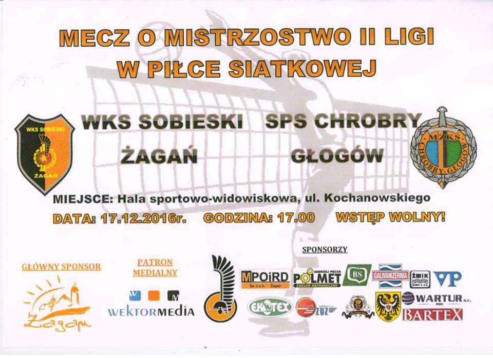 Już w sobotę nasz zespół zagra z liderem grupy Chrobrym Głogów. Zapraszamy na mecz i do kibicowania naszym. Wstęp wolny!