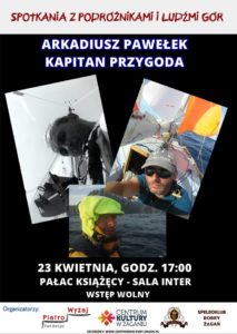 Zapraszamy na kolejne Spotkanie z Podróżnikami i Ludźmi Gór. W niedzielę 23 kwietnia w Pałacu Książęcym w Sali Inter o godzinie 17.00 wyruszymy w podróż przez morza i oceany. Na wodzie - ARKADIUSZ PAWEŁEK, który m.in. jako drugi człowiek na świecie samotnie przepłynął pontonem "Cena strachu" przez Atlantyk, członek załogi słynnej "Łódki Bols".Arkadiusz Pawełek opowie […]